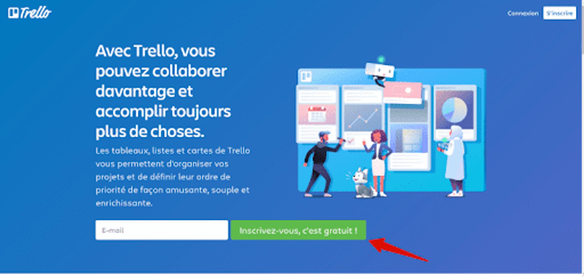 « Commencez votre essai gratuit » est succinct. Avec un total de 4 mots, un visiteur peut rapidement le lire et passer ensuite à l'action.