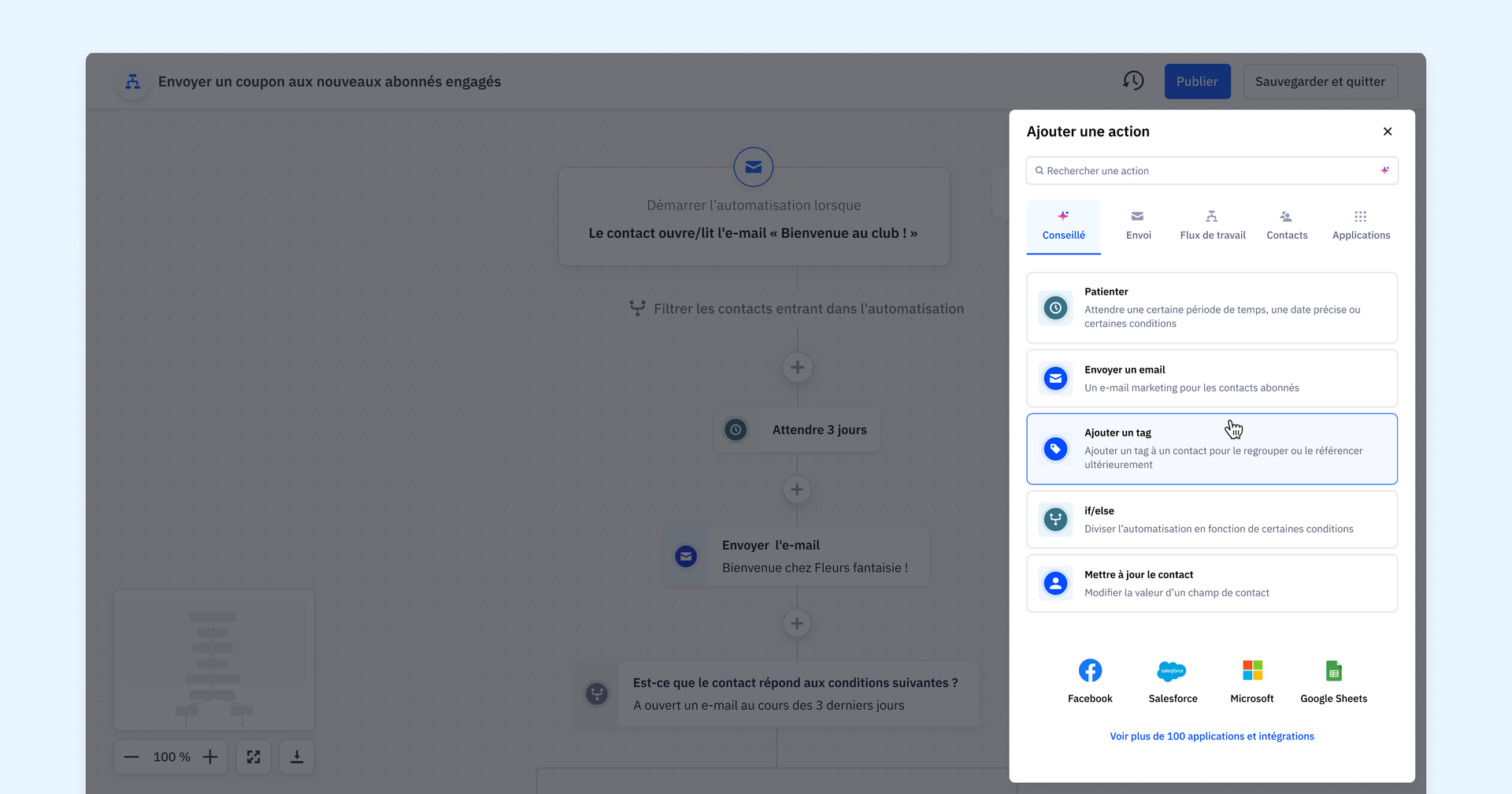 - Meilleure découvrabilité des actions : Le menu mis à jour améliore la découvrabilité des actions, ce qui vous permet d'explorer et de sélectionner plus facilement les actions adaptées à votre automatisation, que vous soyez débutant ou expérimenté en marketing.