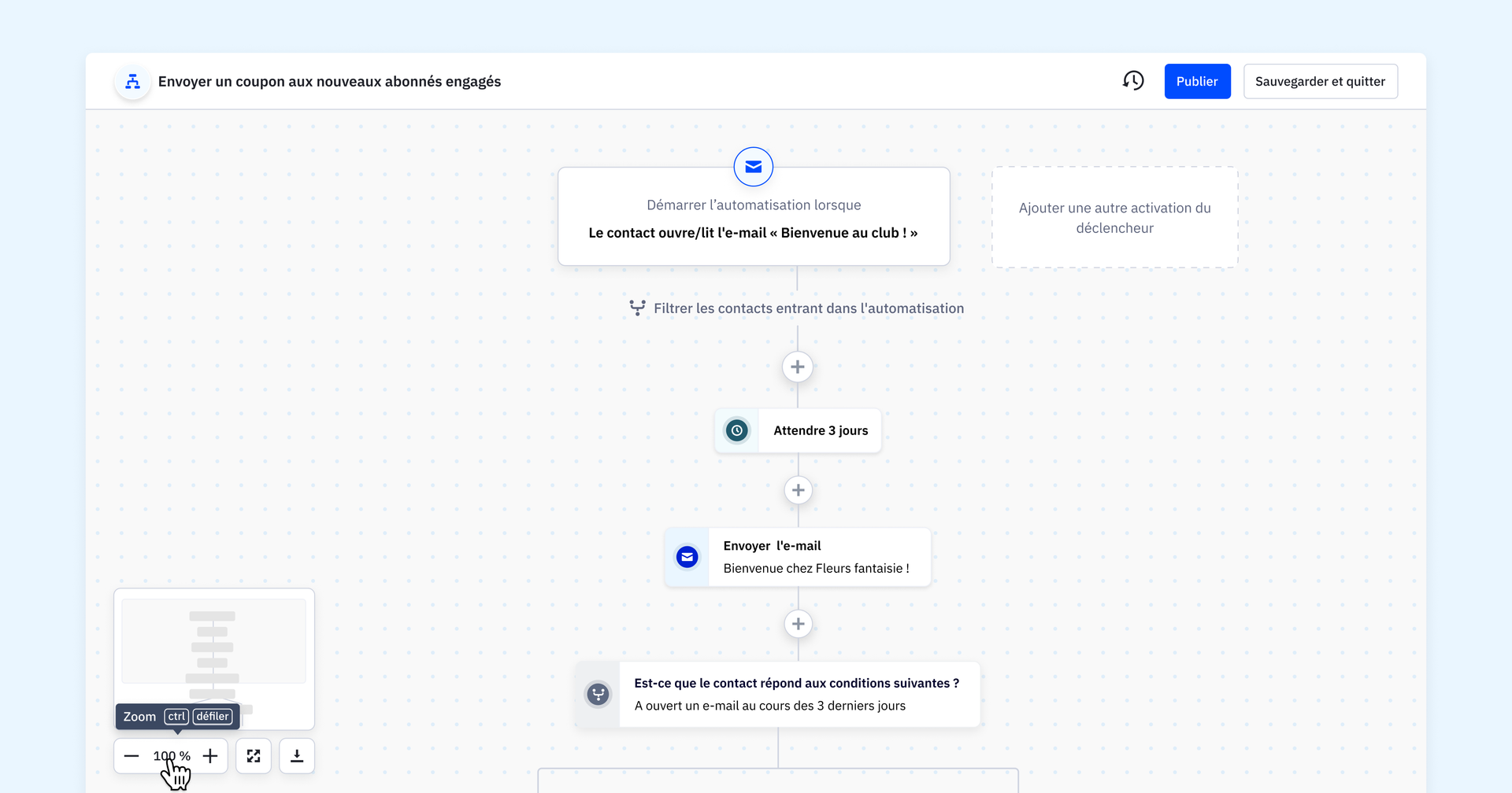 - Mini-carte d'automatisation : Parcourez facilement vos automatisations grâce à la nouvelle fonctionnalité de mini-carte. Obtenez un aperçu rapide de l'ensemble de votre workflow et accédez directement à des sections spécifiques.