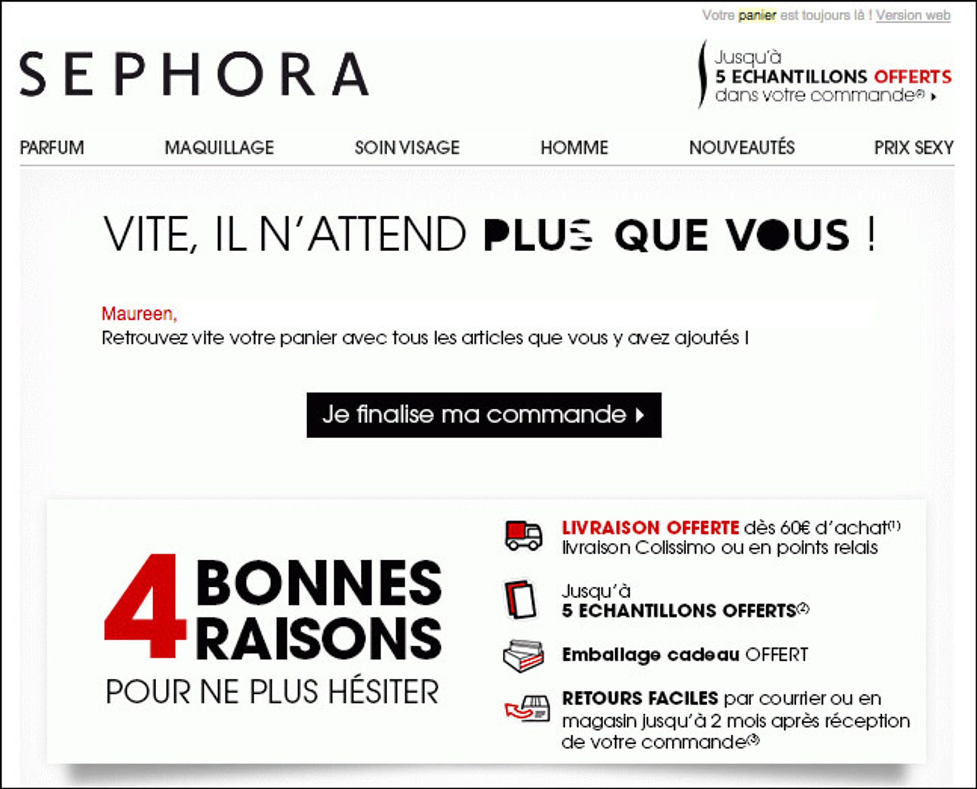 L'aversion aux pertes est une stratégie importante à utiliser pour ce premier e-mail de panier abandonné. Regardons ensemble cet exemple de Sephora.