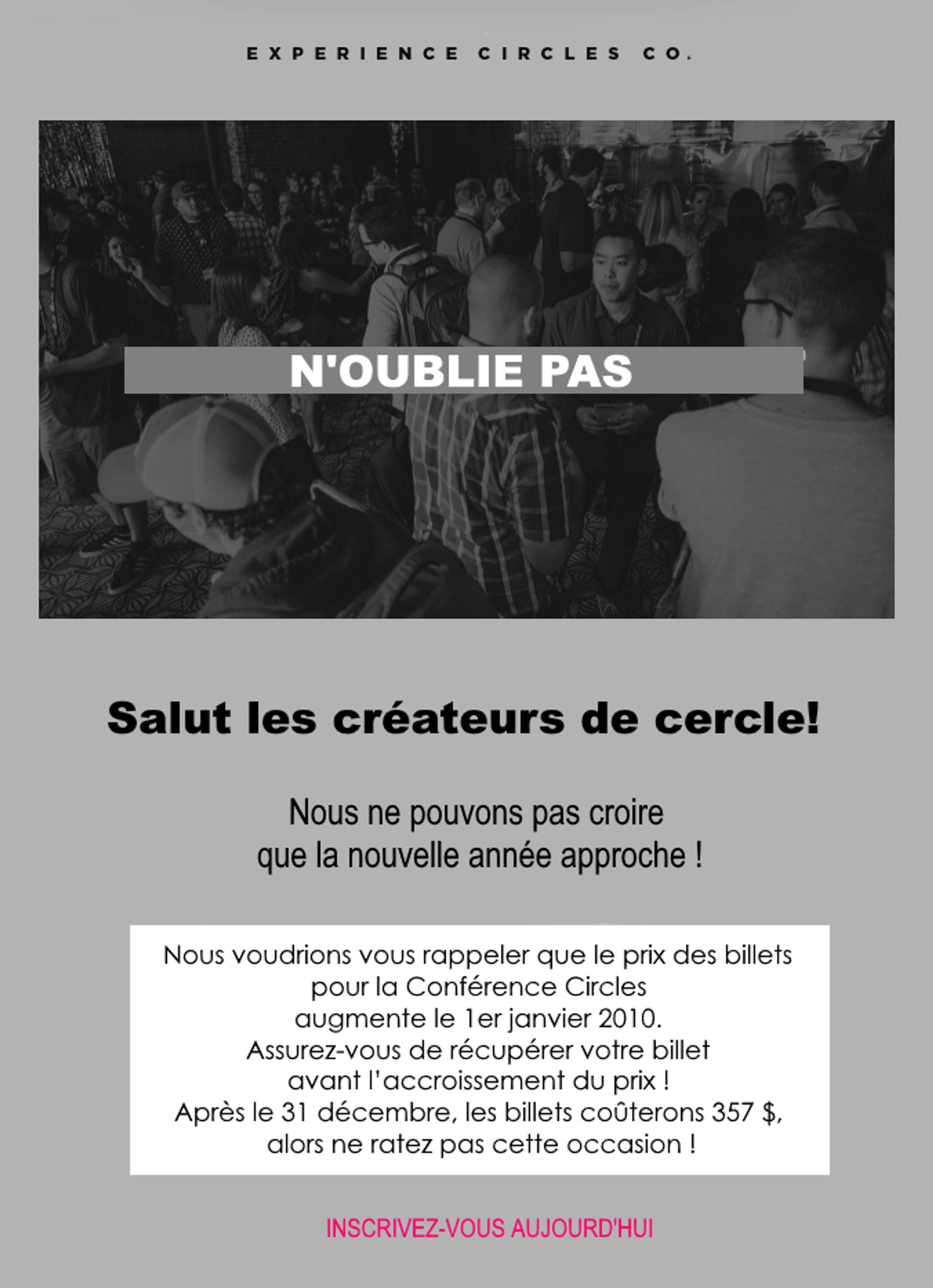 - Vous inciter à vous inscrire à l’évènement.