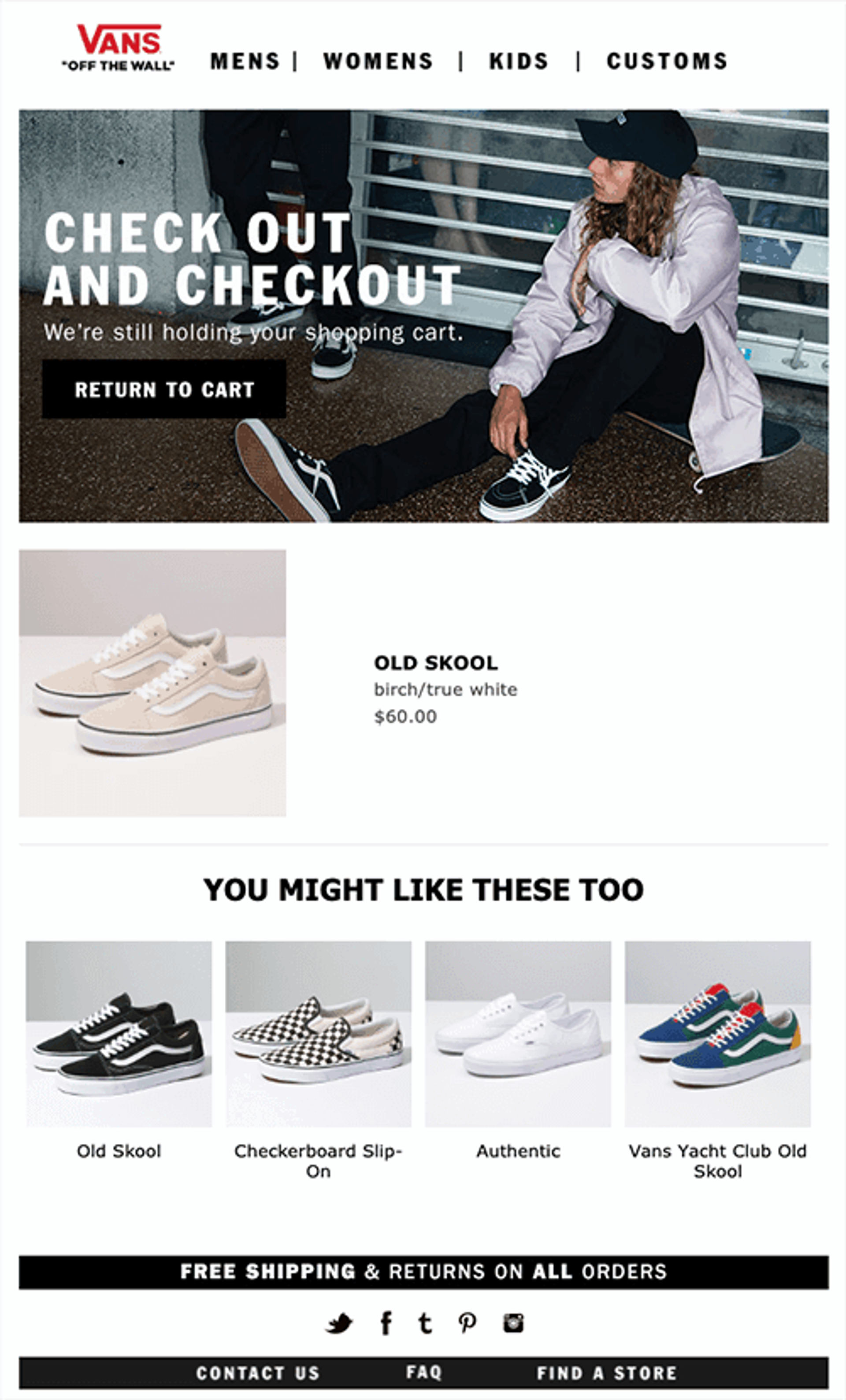 - Vans emploie un design dépouillé qui reflète la mise en page de sa boutique en ligne (cohérence de la marque).