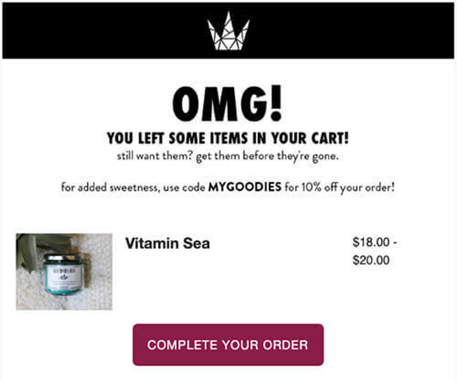 Avec autant d’options à votre disposition, il pourrait être tentant de les combiner toutes dans votre modèle d’e-mail de panier abandonné. Évitez cela à tout prix : ce n’est pas pour rien que l’expression tutti frutti est utilisée avec des connotations comiques voire négatives…