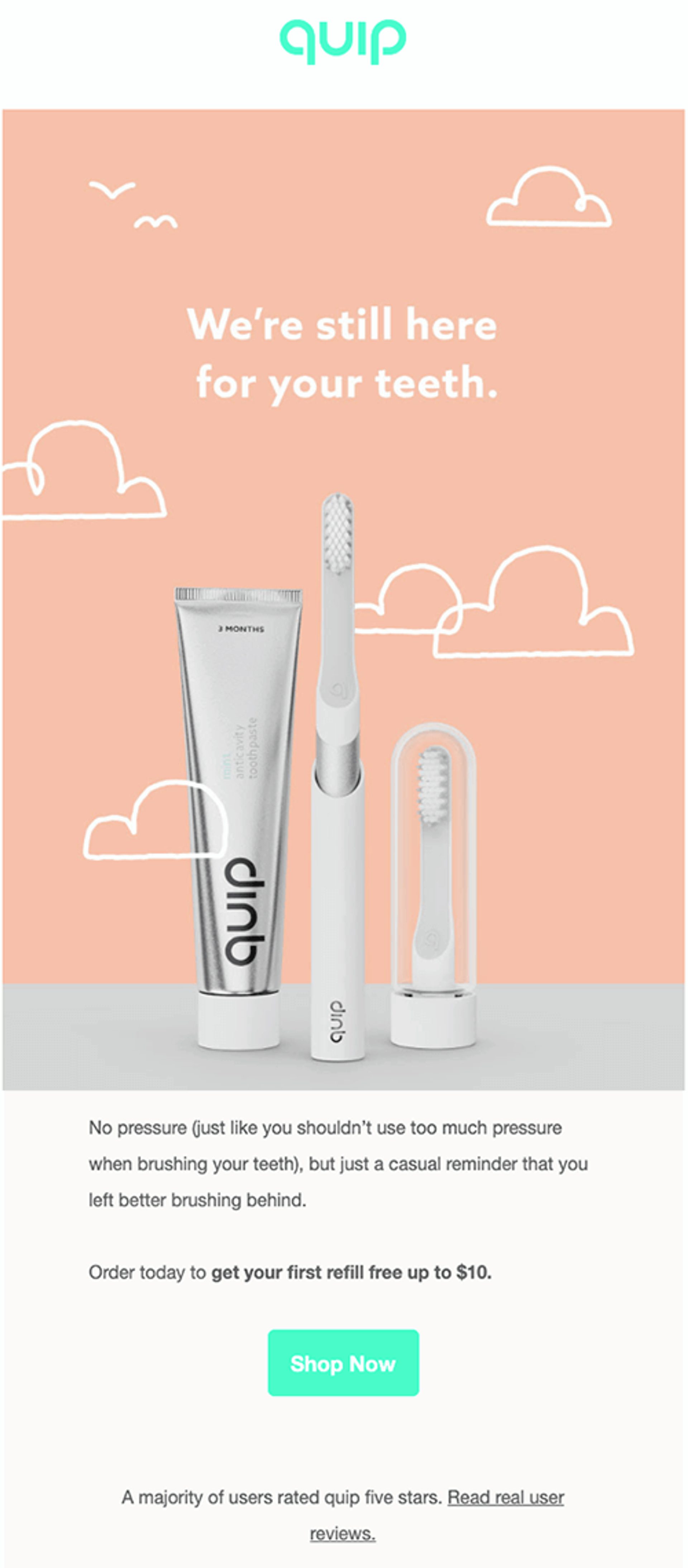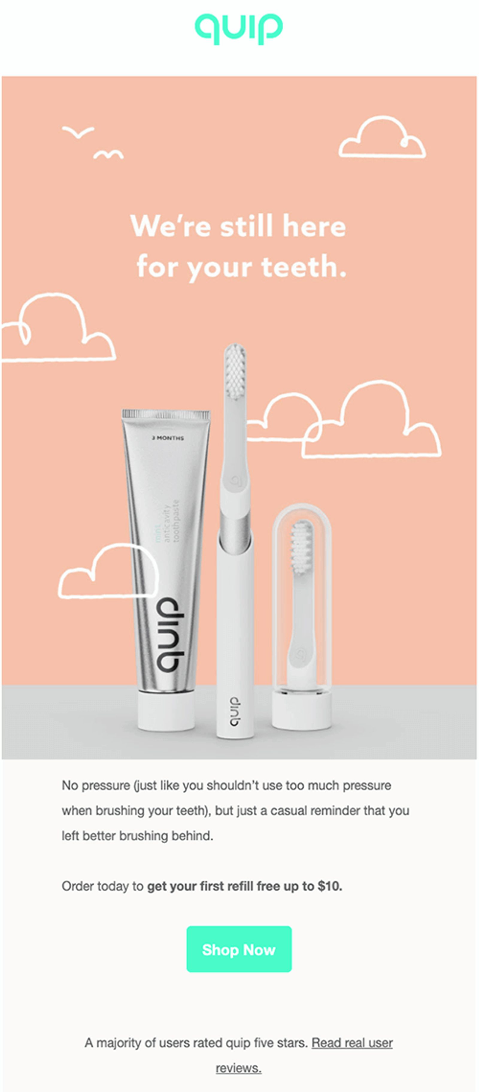 - Il n’est pas encombré de tactiques qui vont à l’encontre du message de Quip. Cette simplicité se traduit par une confiance en leur produit.