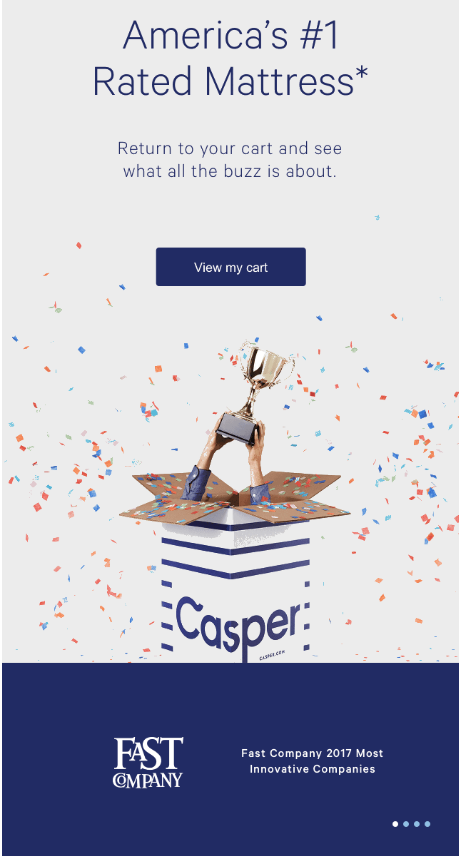 Casper a-t-il trouvé le moyen de convertir les paniers abandonnés ? Casper est passé de 0 à 750 millions de dollars en quatre ans. Une partie de leur succès repose sur le fait de trouver des solutions de récupération pour réduire les taux d’abandon de panier.
