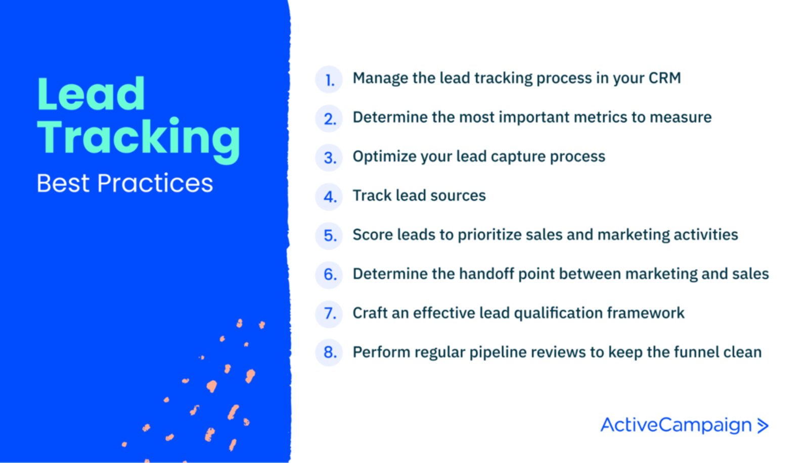 Dans cet article, nous allons aborder 8 bonnes pratiques en matière de suivi des leads. N’oubliez pas qu’il ne s’agit que de lignes directrices : certaines peuvent être plus pertinentes que d’autres selon les activités de votre entreprise. Adaptez-les à vos besoins.