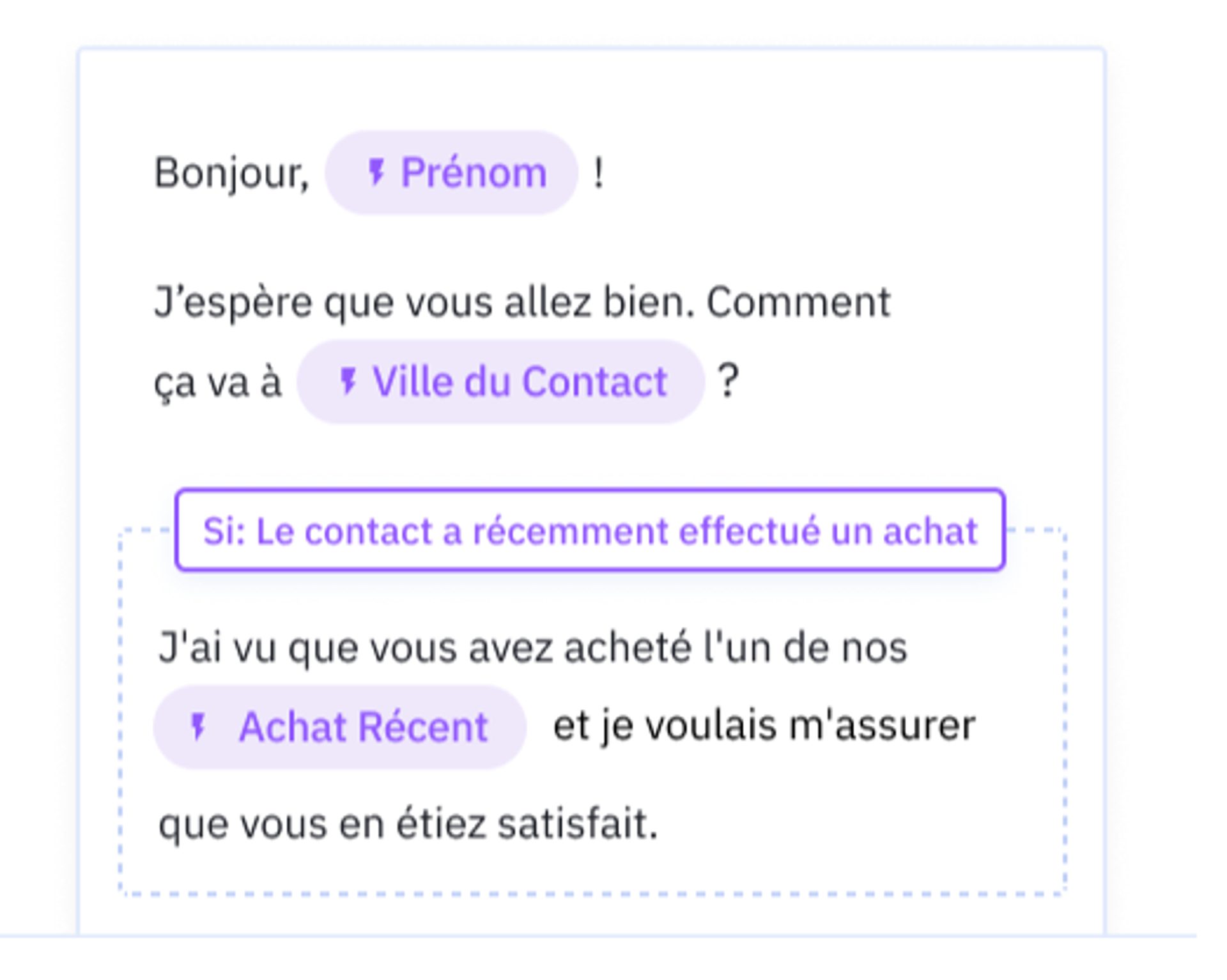 ActiveCampaign est sans l’ombre d’un doute l'outil d'automatisation le plus puissant sur le marché. Il vous permet de mettre en place pratiquement toutes les automatisations dont vous pouvez rêver - campagnes déclenchées, suivi de vente, segmentation automatisée, contenu dynamique des e-mails, relance et suivi automatiques etc. De même, vous pouvez envoyer automatiquement des e-mails de vente personnalisés (1:1) via votre propre boîte de réception.