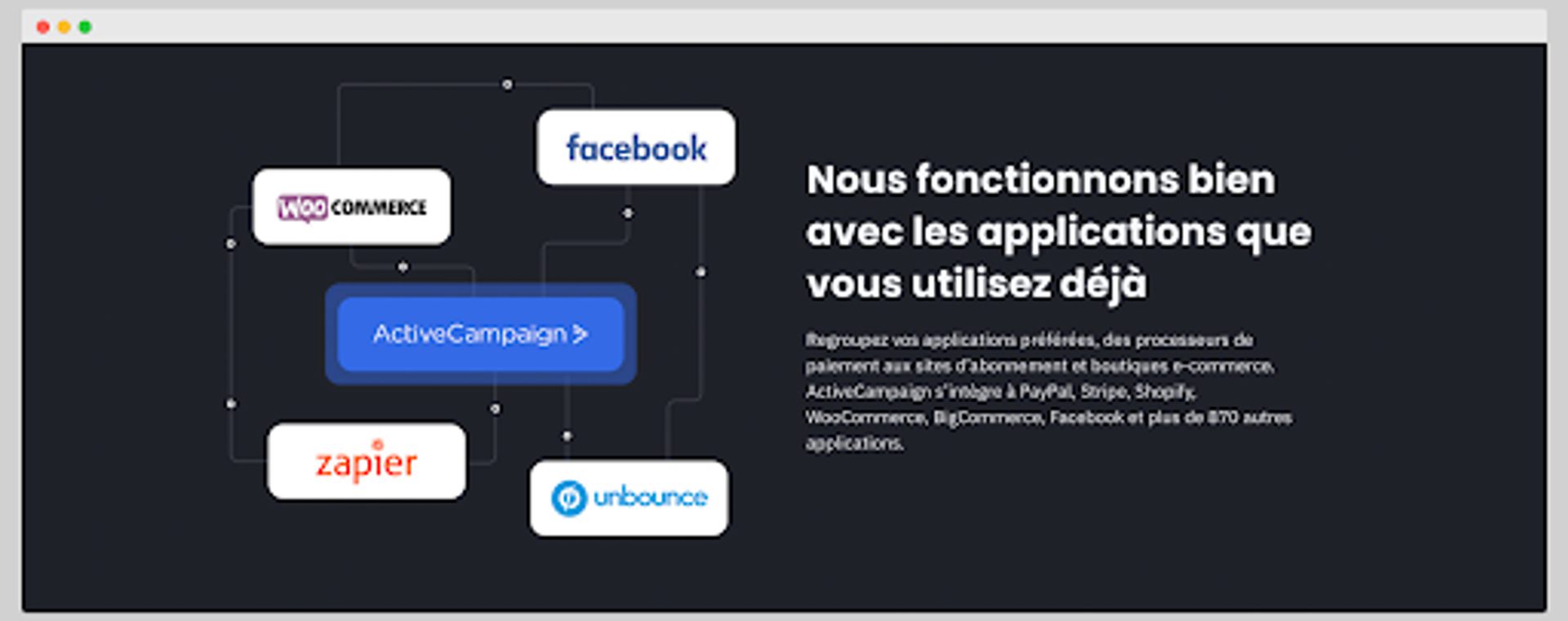 - Intégrations : ActiveCampaign s'intègre facilement avec vos logiciels préférés comme Zapier.