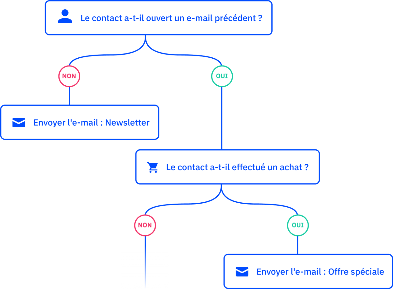 De nombreux services de logiciels de marketing automatisés vous offrent la possibilité de personnaliser vos scénarios “si… alors…”. Ce faisant, vous indiquez au système comment il doit gérer toute une série de situations.