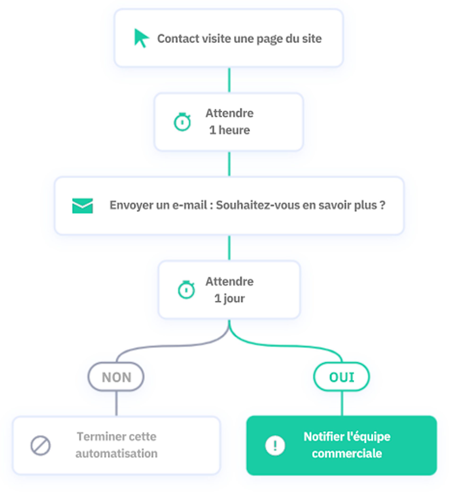 Le marketing automation gère vos tâches les plus chronophages. Configurez l'automatisation de vos e-mails d'envoi de newsletter vous permet de transformer les lecteurs de votre newsletter gratuite en acheteurs et vous assure que vos abonnés restent engagés. Et tout cela, sans agrandir votre équipe commerciale.
