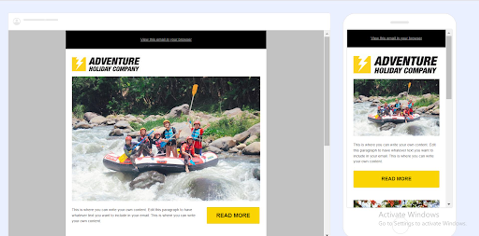 Tous nos modèles de newsletters sont adaptés à tous types d'écrans. Ainsi, vos clients pourront lire votre newsletter sur un écran de téléphone et sur un écran d'ordinateur, sans altérer la fluidité de leur lecteur.