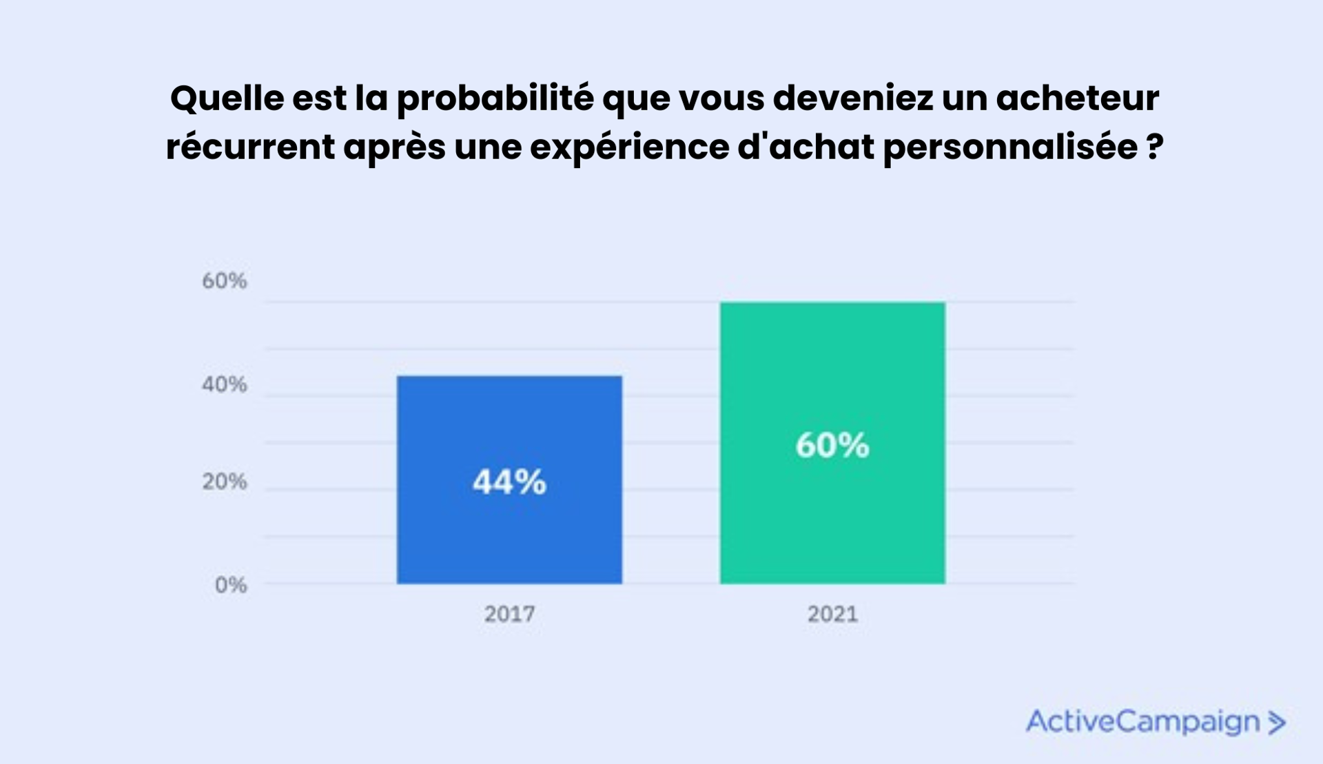 Des études montrent que 60 % des clients se transforment en acheteurs réguliers après une expérience personnalisée. 52 % affirment également qu'une expérience personnalisée améliore leur satisfaction.