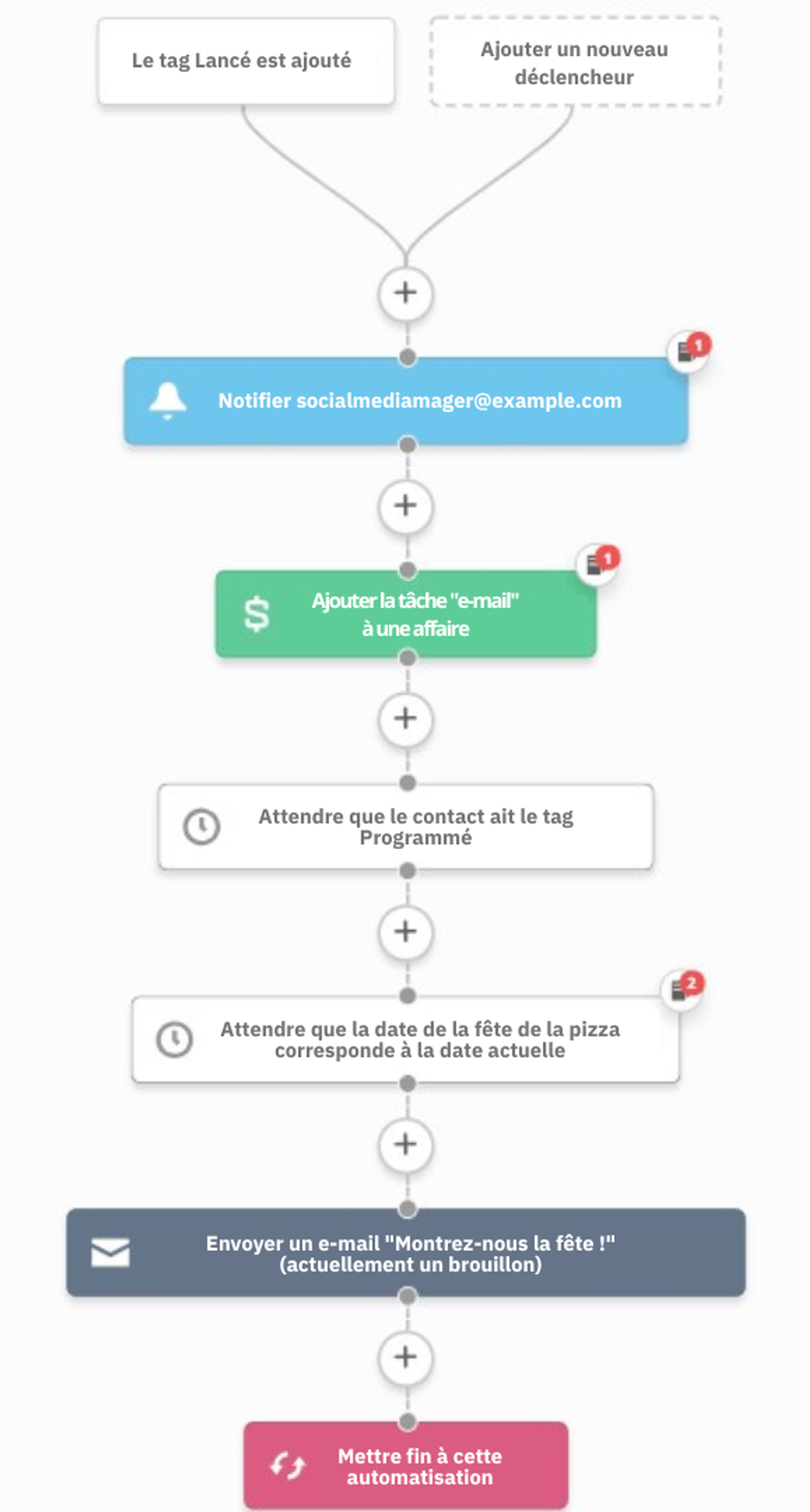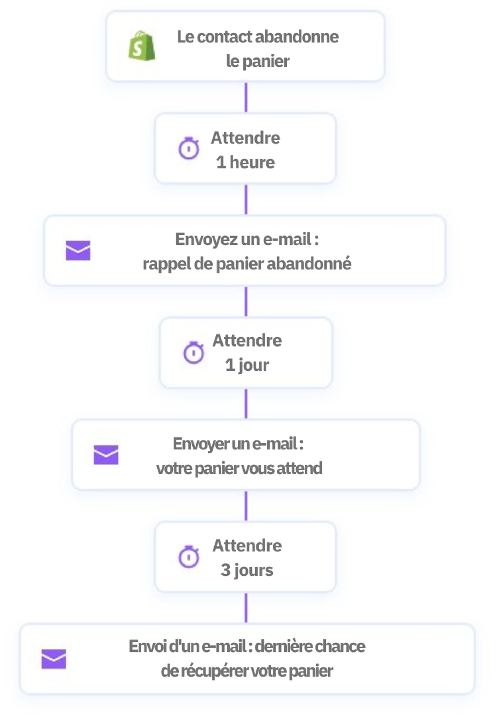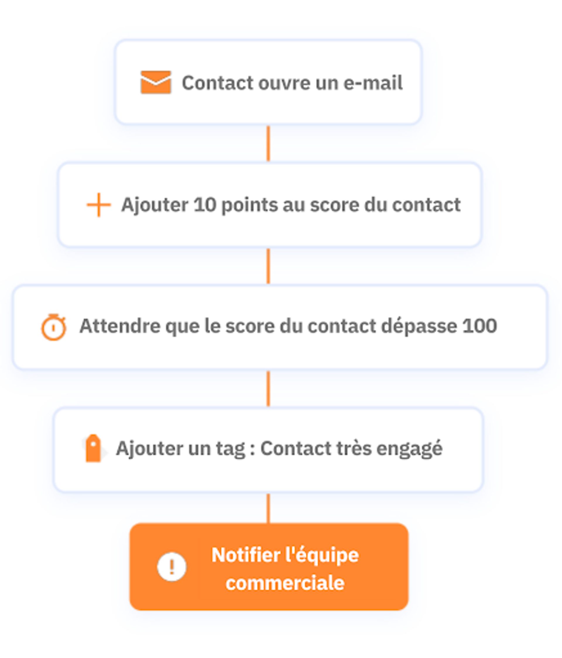 Vous essayez d'augmenter l'engagement des prospects dits « froids » (qui ne sont pas en train de devenir des clients). Pour ce faire, vous avez mis en place une série d'étapes dont :