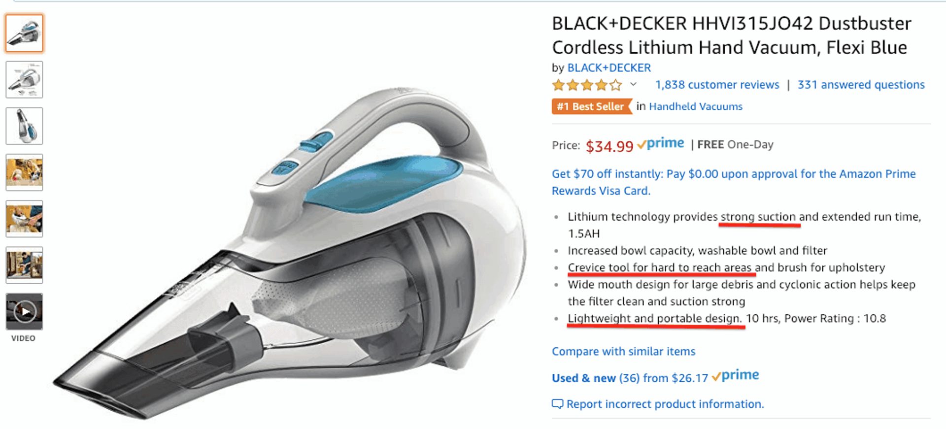 Imaginez que vous soyez Black & Decker et que vous essayiez de me convaincre d’acheter un aspirateur portable sans fil. Que me diriez-vous pour m’inciter à le faire ?