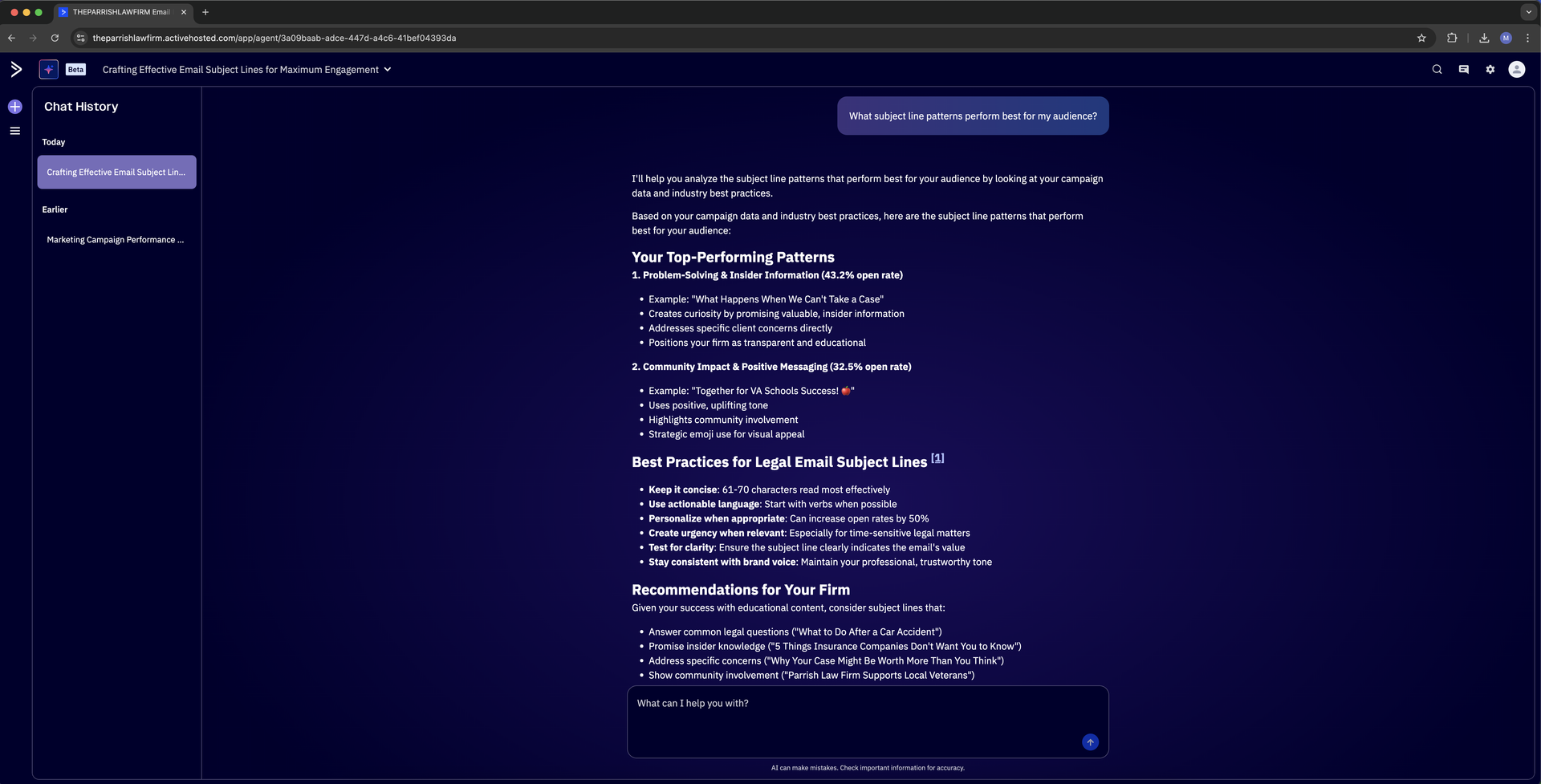 Au milieu de l’année 2024, le cabinet Parrish Law est passé de MailChimp à ActiveCampaign. La différence a été immédiate.