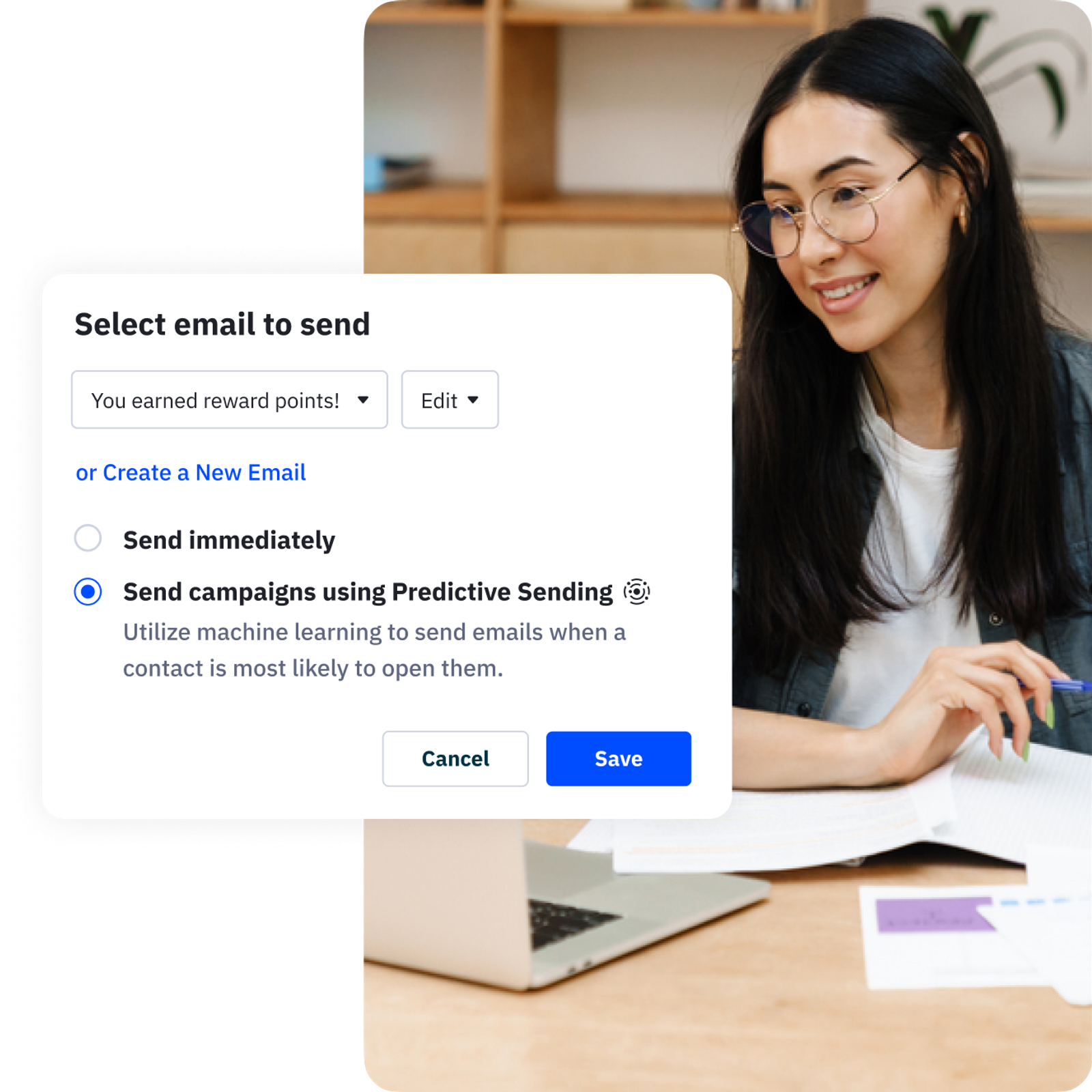 Notre fonctionnalité d’envoi prédictif utilise l’apprentissage automatique pour trouver les moments exacts où vos contacts sont les plus engagés, en fonction de leurs actions et de données similaires intelligentes.