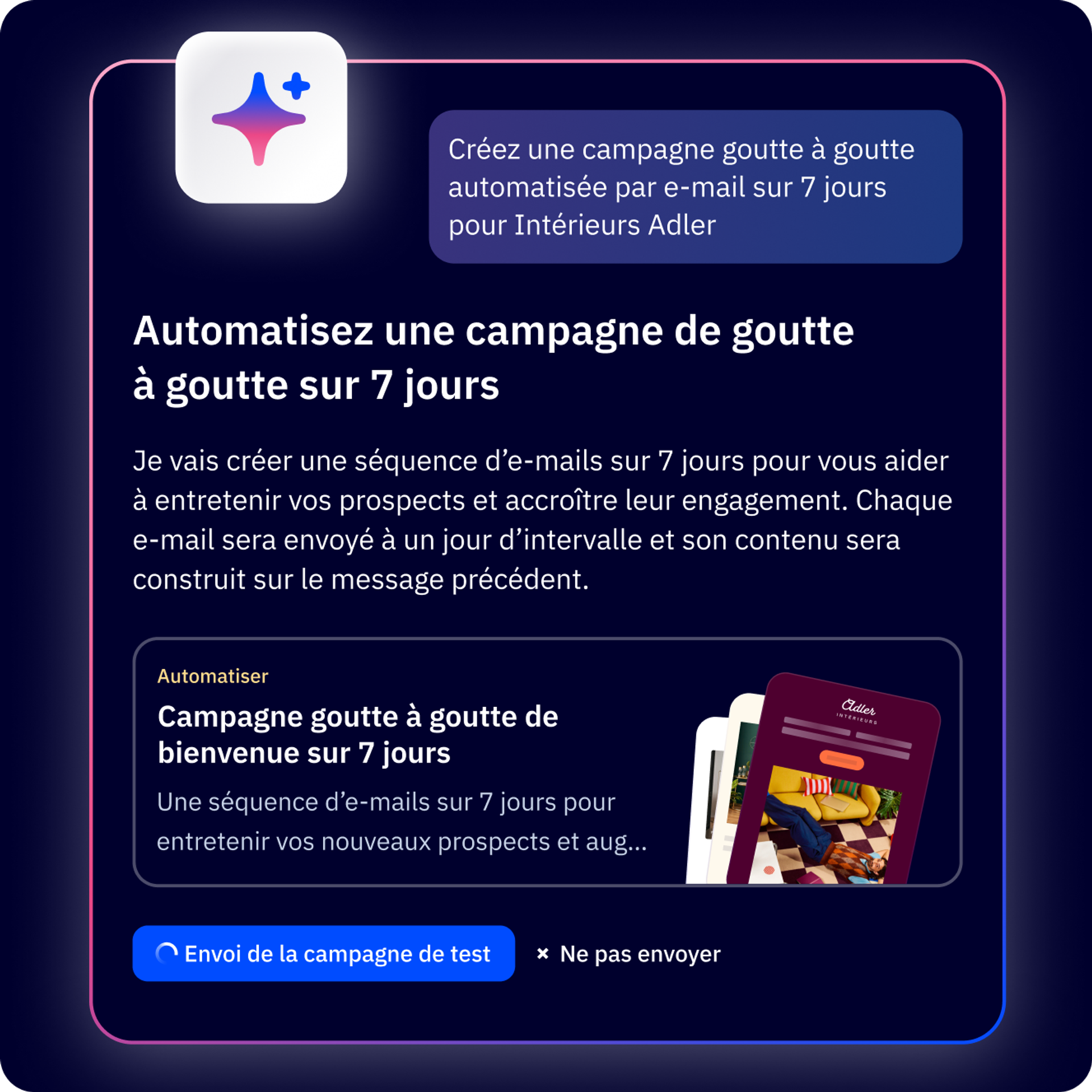 Générez une campagne par e-mail optimale à partir d’une simple invite.