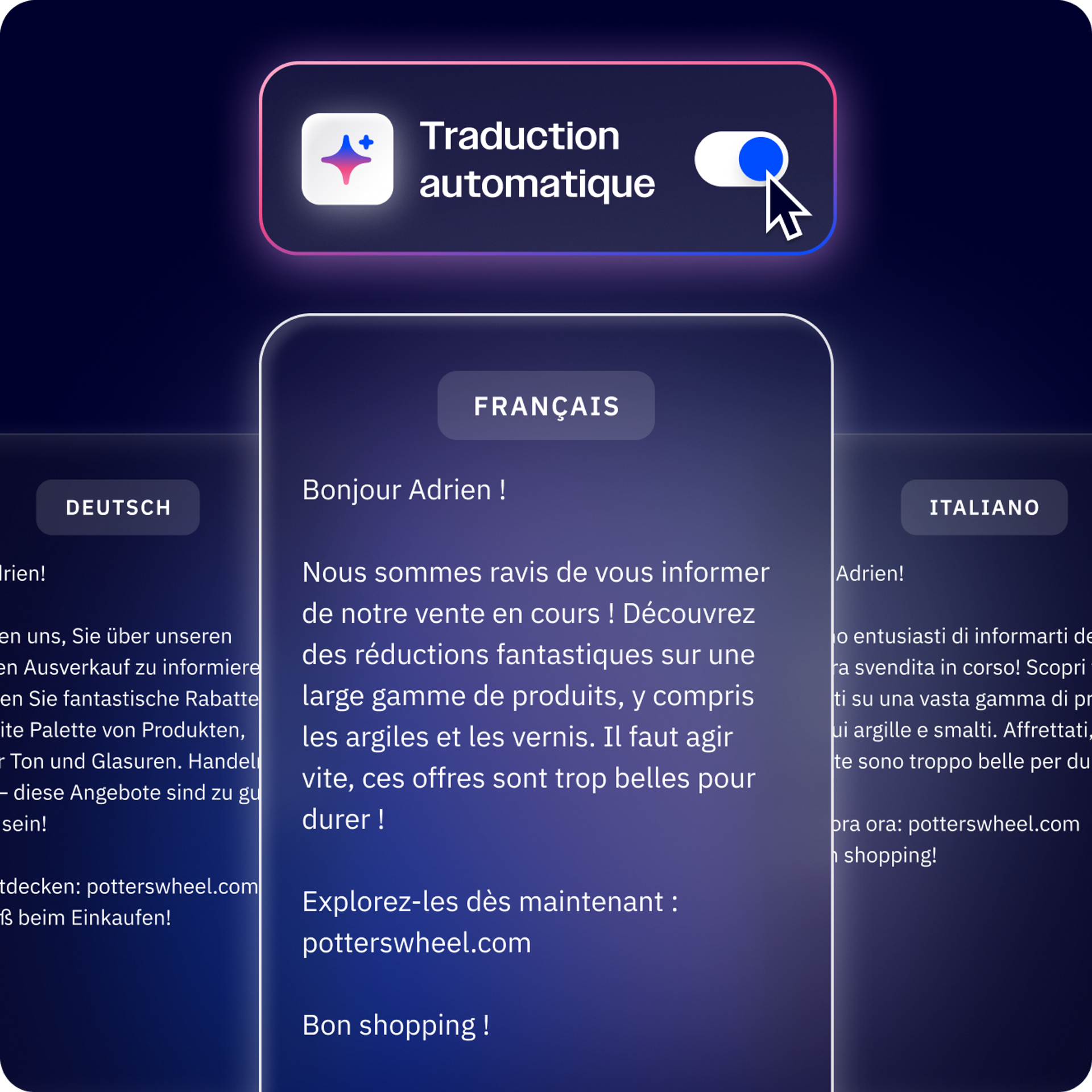 Traduisez avec précision vos messages dans plusieurs langues tout en conservant le ton et la personnalité de votre marque.