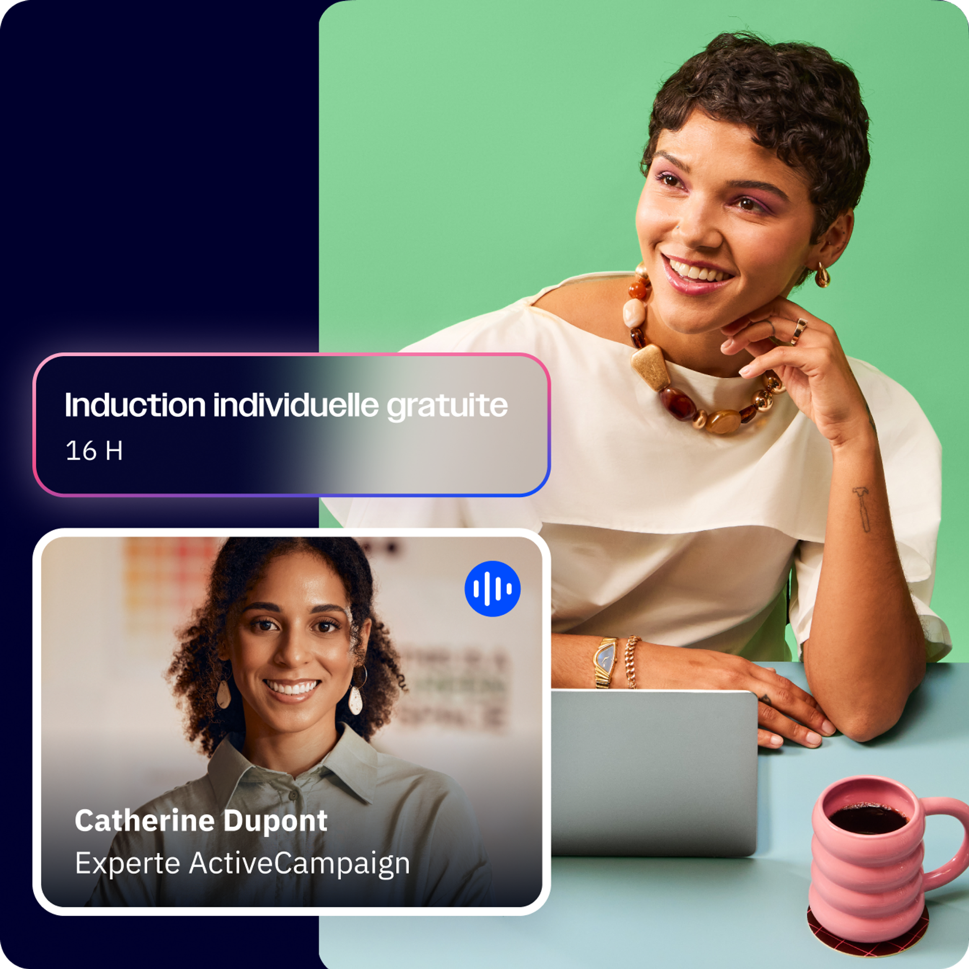 ActiveCampaign me permet d’engager chaque cliente comme si je la contactais personnellement. Avec toutes mes données clients en un seul endroit, je peux les utiliser pour automatiser un contenu personnalisé et des recommandations qui répondent aux besoins de chaque cliente et les incitent à rester fidèles.