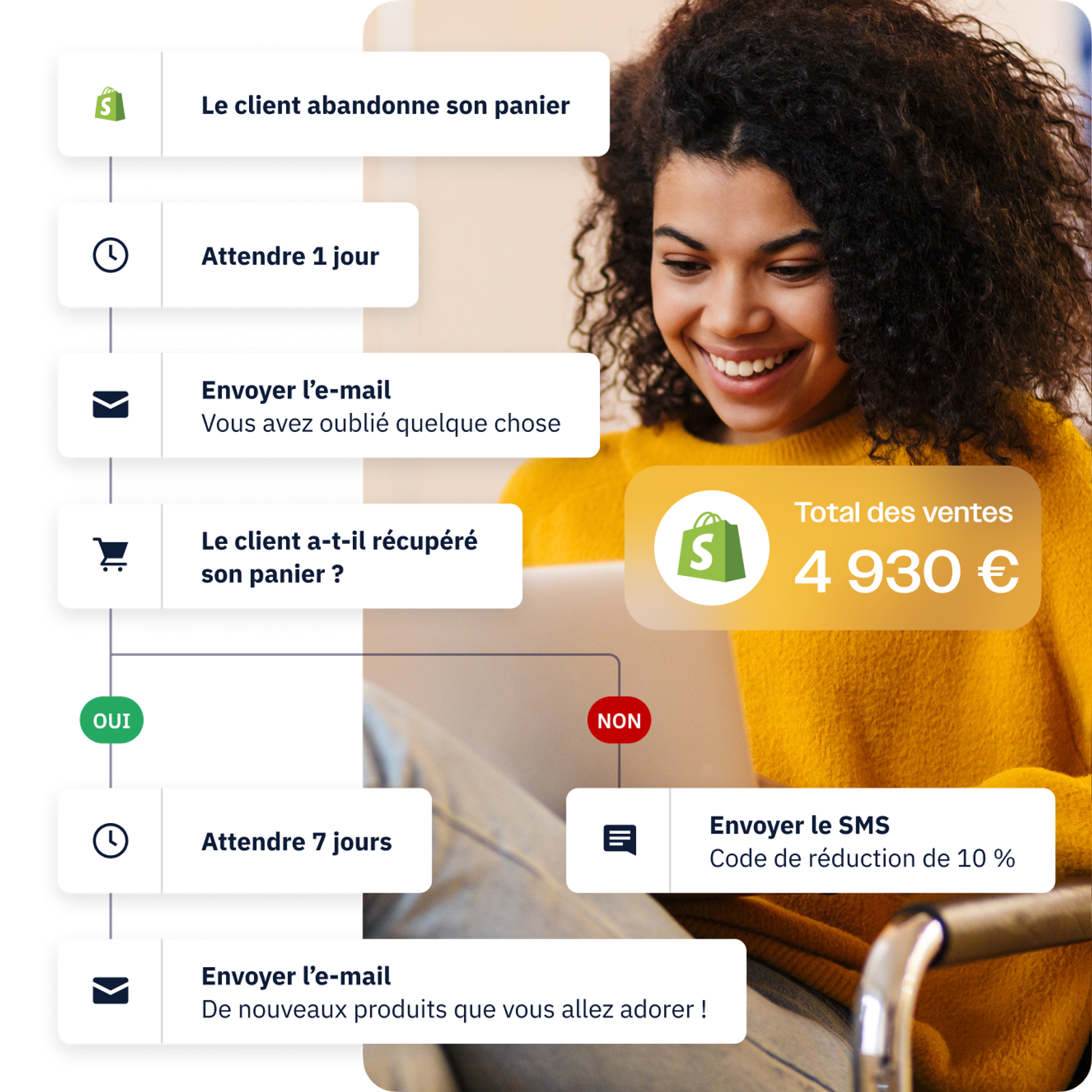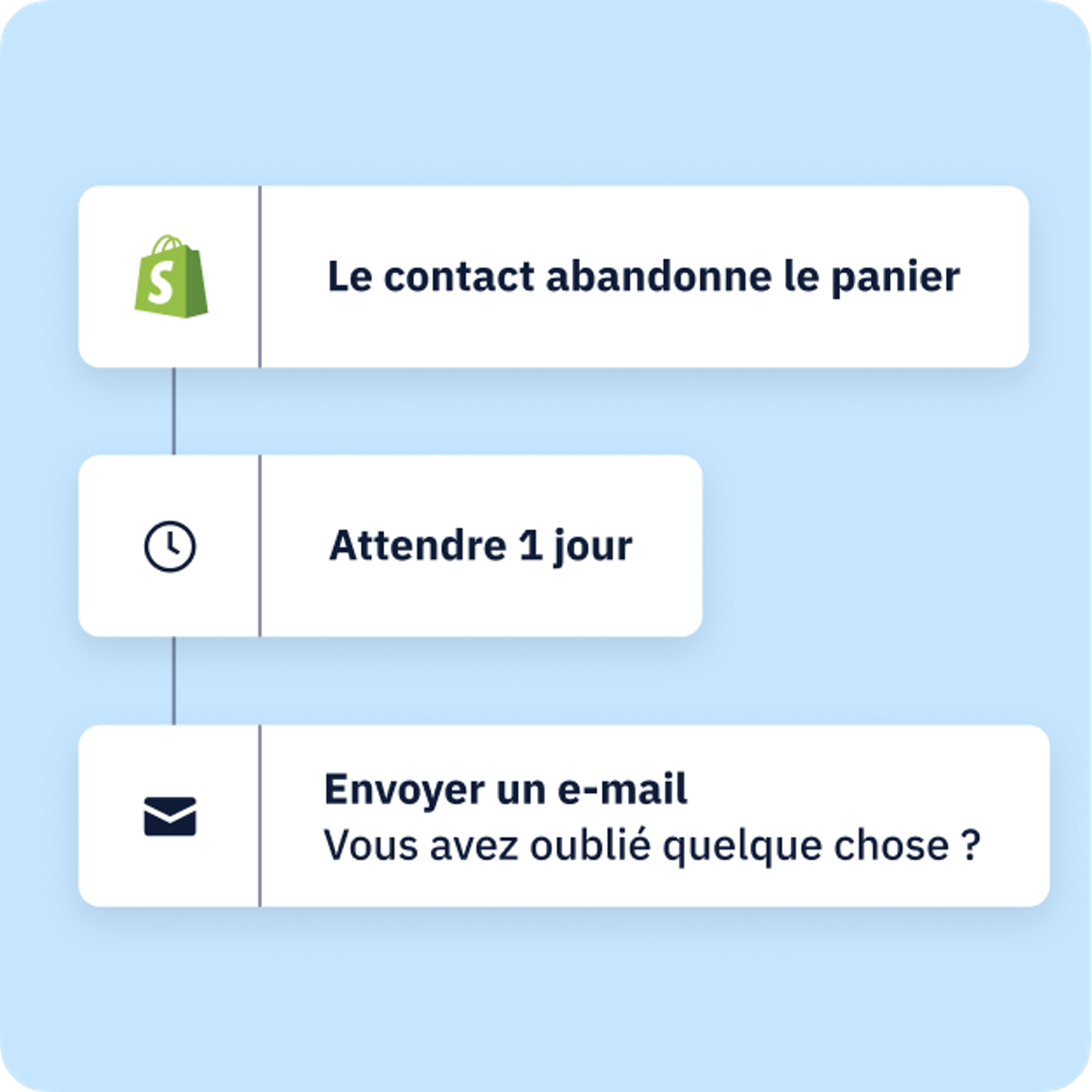 Envoyez des e-mails lorsque vos clients quittent votre site Web sans valider leur panier. Récupérez les ventes perdues et augmentez les achats.