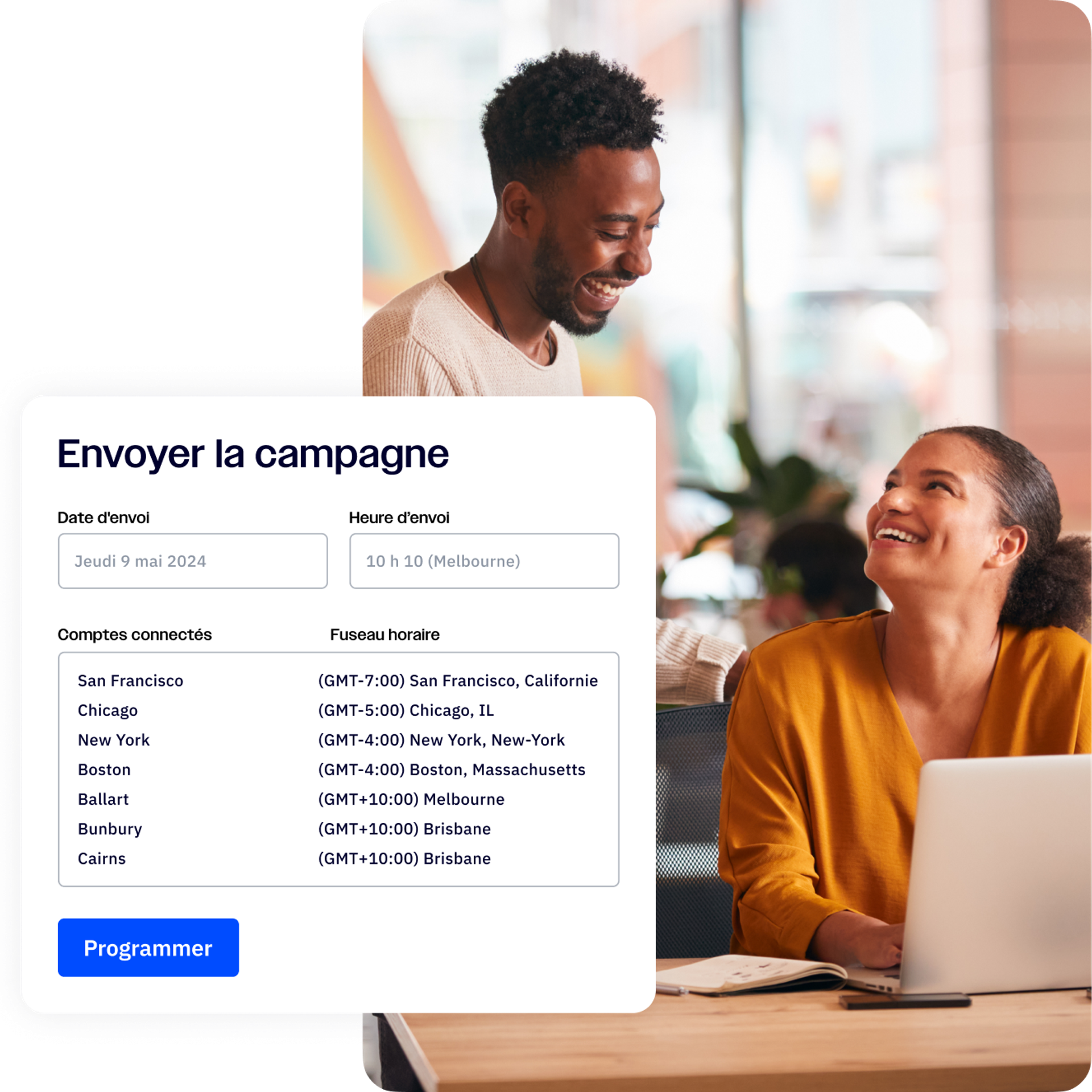 Synchronisez les modèles sur tous vos comptes. Créez des campagnes de marque avec des options de personnalisation avancées pour adopter une voix locale par site.