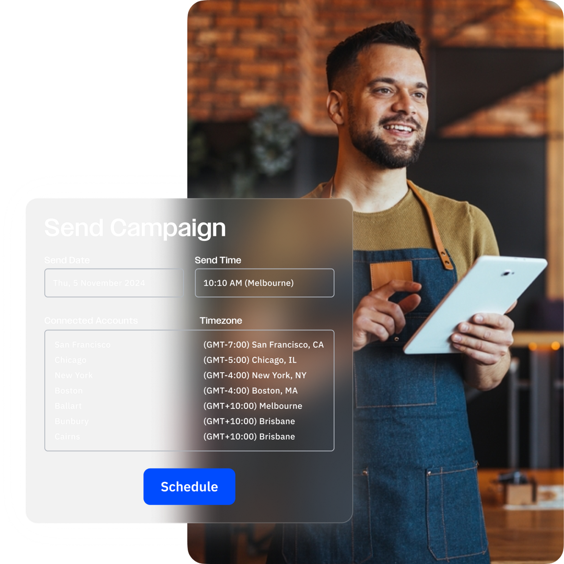 Maintain centralized control over templates and campaigns. Locations can easily adapt them to resonate with their local market, creating impactful and locally relevant messages.