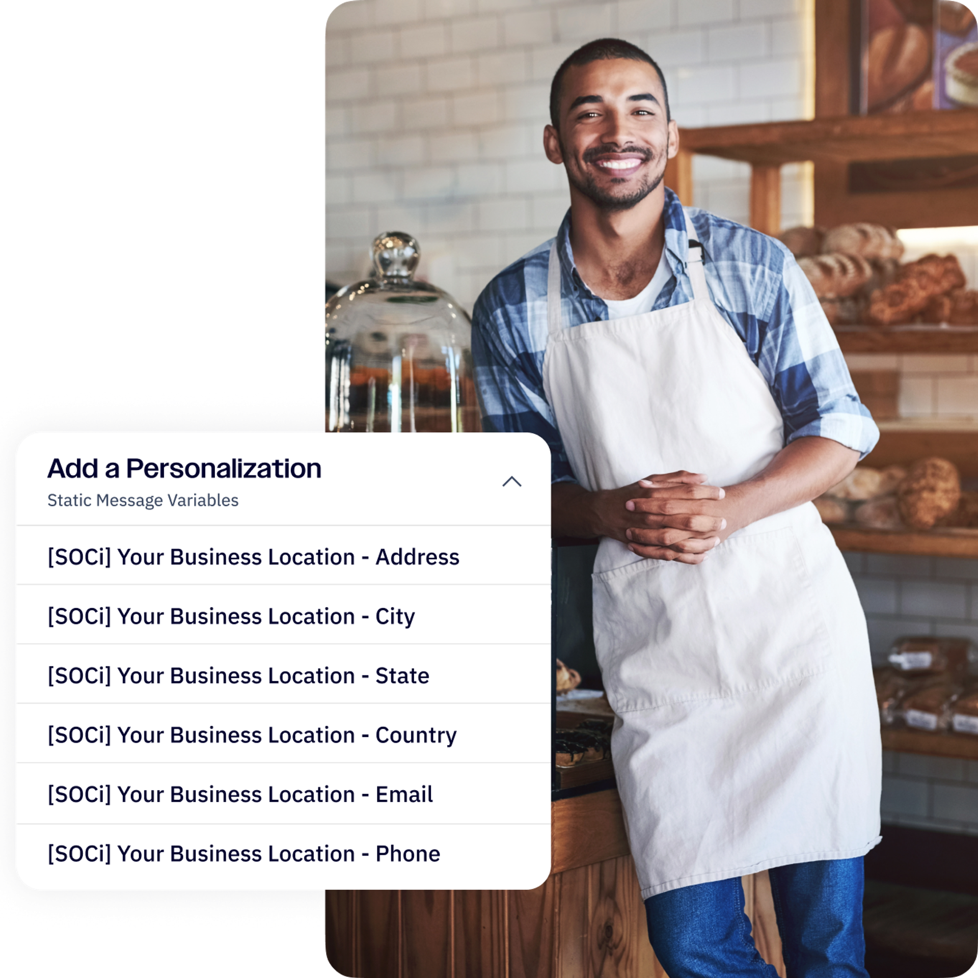 Deliver accurate, up-to-date, location-specific content every time. In a single click, the SOCi CX App integration brings your business listing data into ActiveCampaign HQ. With SOCi’s platform as your source of truth, localizing email campaigns is as easy as updating your Google Business Profile.