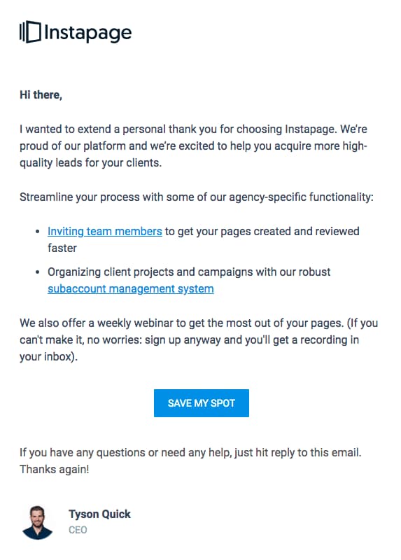 For example, let’s say a customer recently signed up for a free trial. They then receive an email like the 1 below, which is the first in a drip campaign designed to educate the customer on how to use your platform.