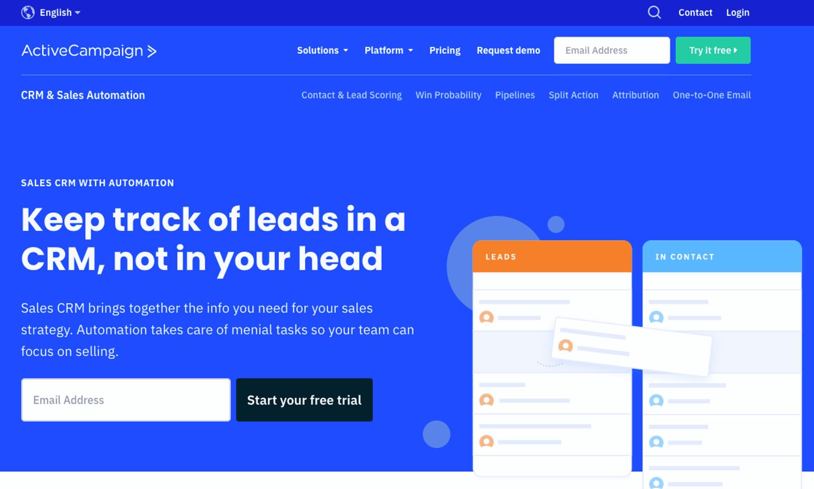- Automated lead scoring: Along with email marketing campaigns, ActiveCampaign allows you to automate lead scoring and other sales and marketing tasks.