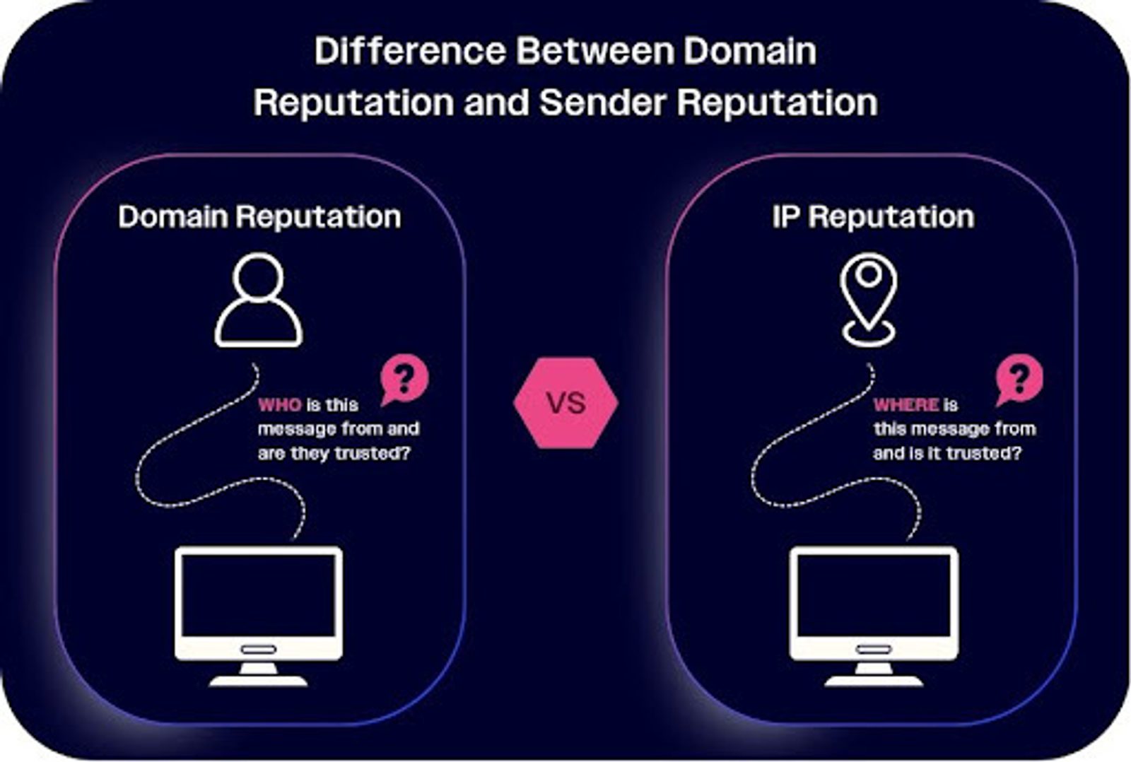Domain reputation considers who is sending a message, while IP reputation considers where it is being sent from.