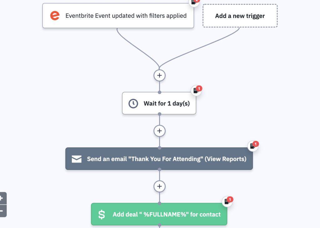 This is your time to automatically fill your sales pipeline with leads at their pique interest! Use this automation to send a follow-up email to engage post-event leads and create a deal in your CRM.