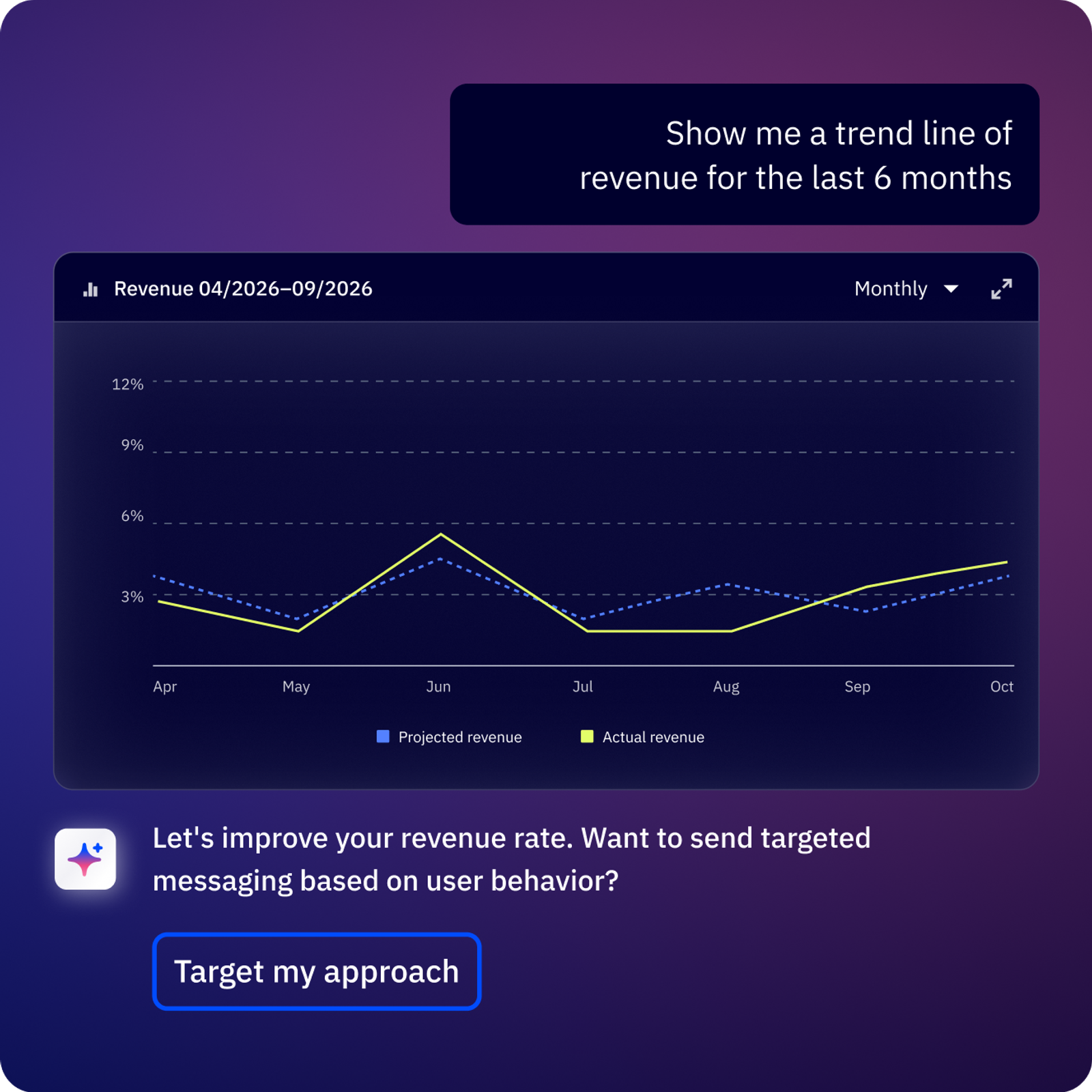 Set targets for enrollments, completions, and revenue, and Active Intelligence will monitor your progress automatically. Track everything from one dashboard, with actionable next steps and smart optimizations that help you hit your targets.