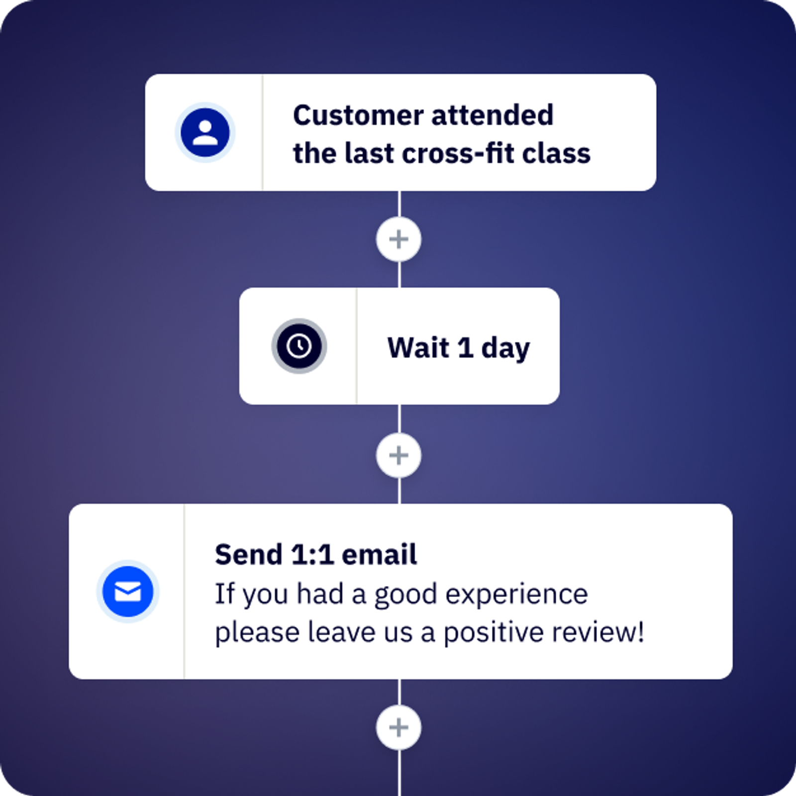 Get the word out about your business. Set up automations that encourage customers to leave a positive review on your site or social profile.