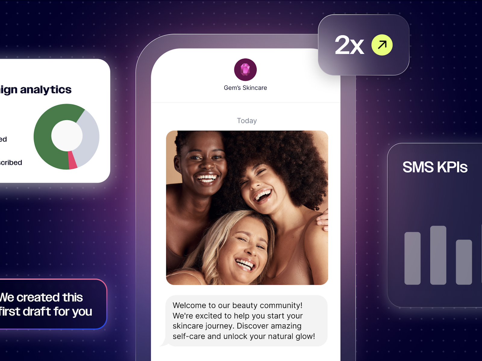 Easily send emails and SMS reminders to confirm appointments, book consultations, and promote new offerings.