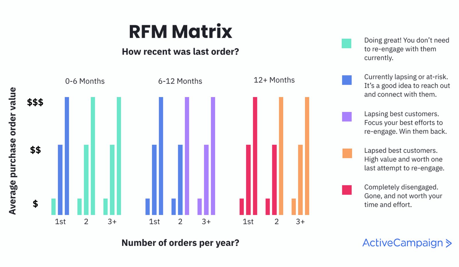Puoi segmentare i tuoi clienti in base a queste 3 metriche (calcolate su periodi di tempo che siano pertinenti con la tua attività):