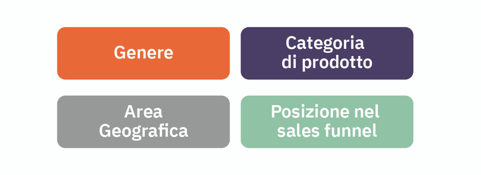 In base ai prodotti presenti sul sito di L.G.R ha identificato 4 variabili in funzione delle quali è necessario differenziare la comunicazione: