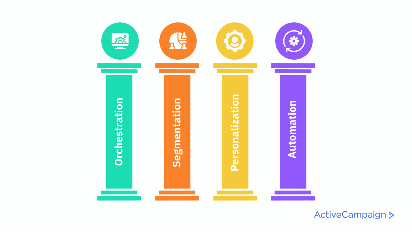 - Orchestrazione: considera l'intero percorso del cliente e identifica le connessioni tra i canali e le piattaforme. ActiveCampaign ti aiuta a collegare questi strumenti per offrire una migliore esperienza complessiva.
