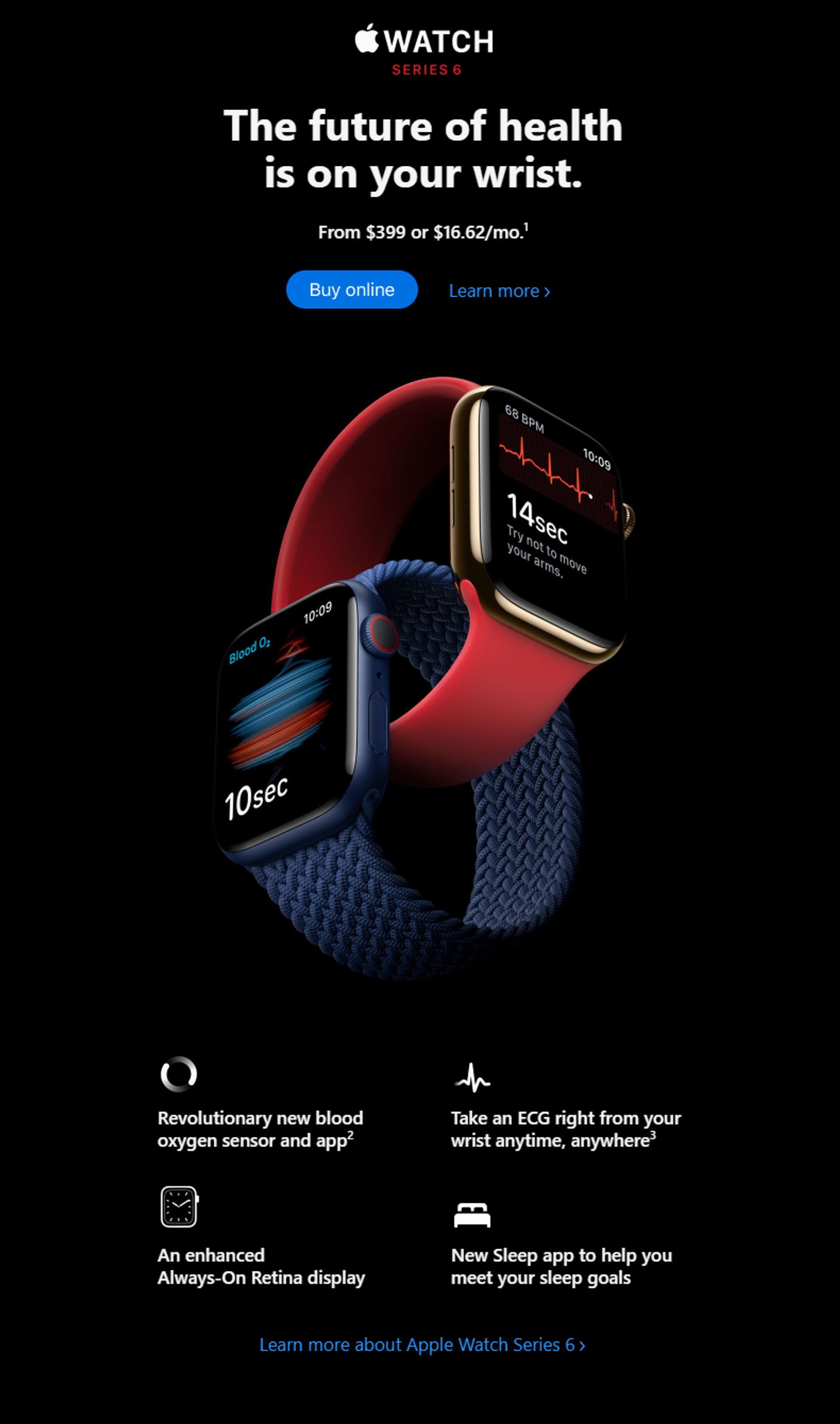 Apple è riuscita a: presentare il suo nuovo prodotto attraverso un testo breve e un’immagine accattivante e di alta qualità che rispecchia l’azienda stessa. Le CTA sono realizzate in modo tale da procedere alla conversione di utenti diversi in base al percorso desiderato.
