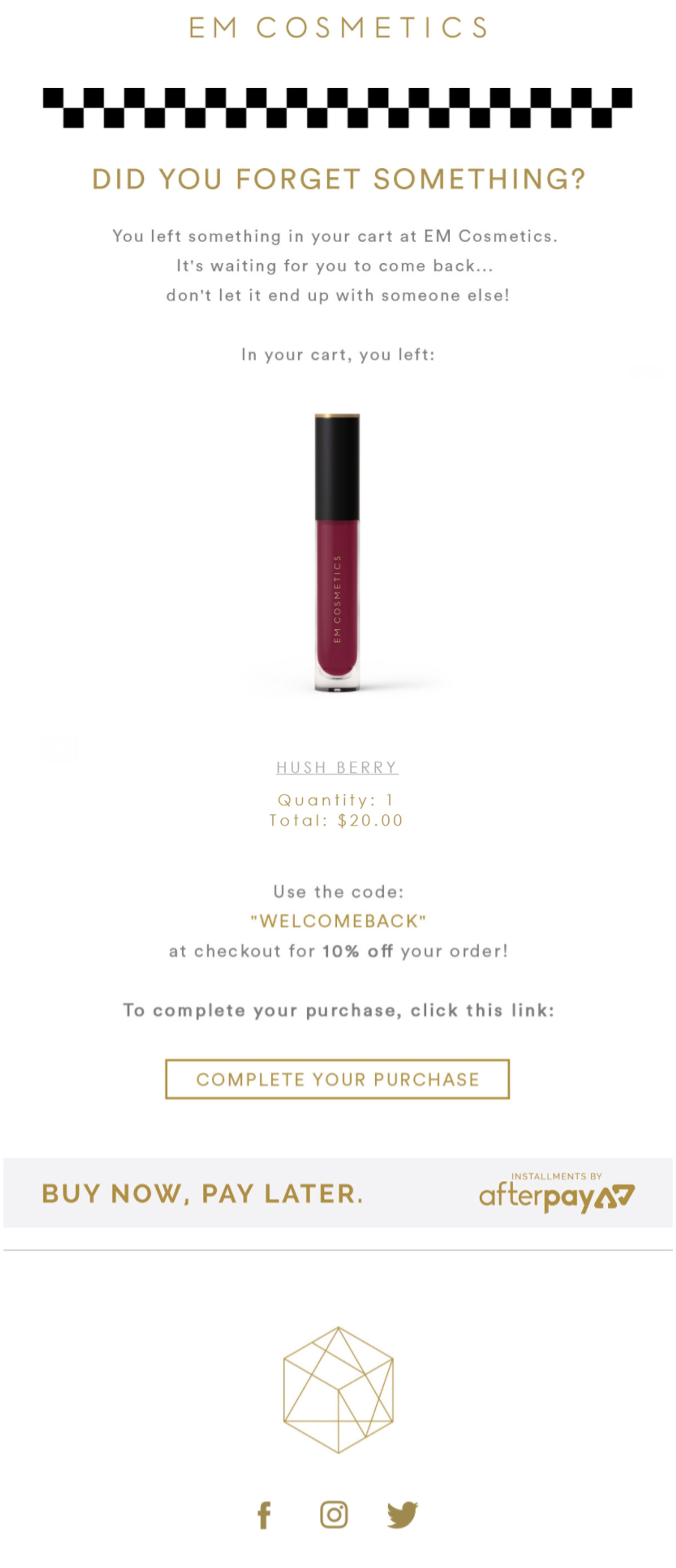 Ogni azienda che abbia uno shop online è costretta a fare i conti con il problema dell'abbandono del carrello. EM Cosmetics è riuscita a mettere in piedi un’ottima comunicazione per far sì che gli utenti completino i loro acquisti.