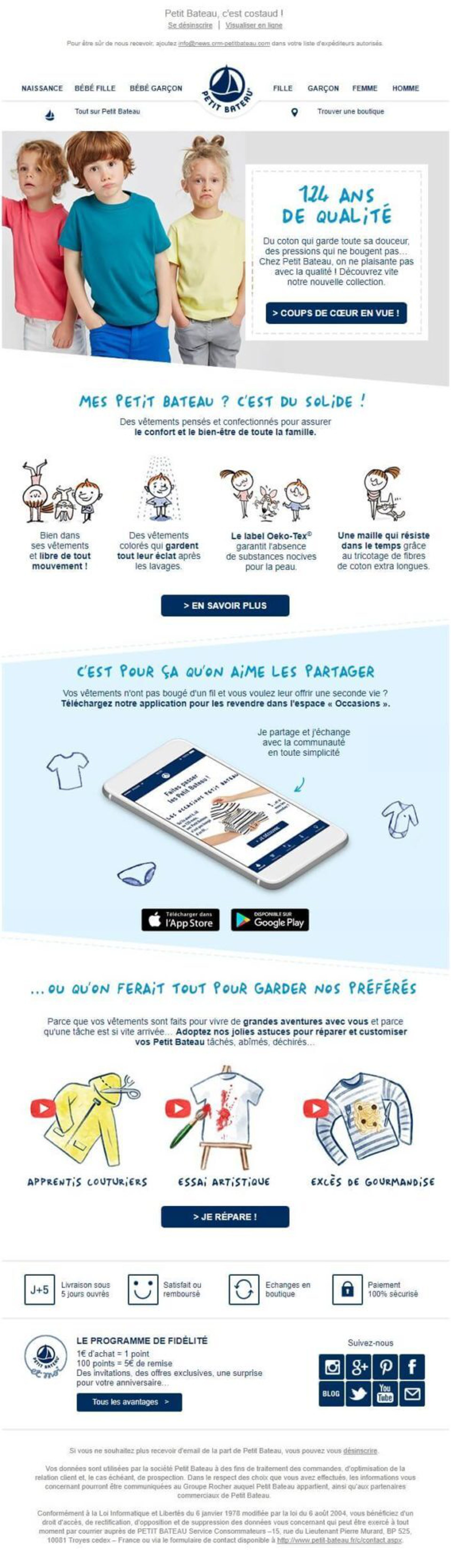 Petit Bateau è riuscita a: trasmettere la propria visione attraverso delle comunicazioni mirate che non solo forniscono informazioni sui prodotti dell’azienda, ma anche informazioni generali che possono essere utili alla clientela. L’obiettivo principale non consiste nel generare un numero più elevato di vendite attraverso l’invio di newsletter, ma fidelizzare i clienti che già acquistano il brand con consigli mirati.