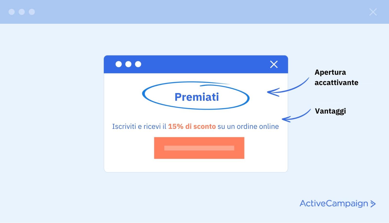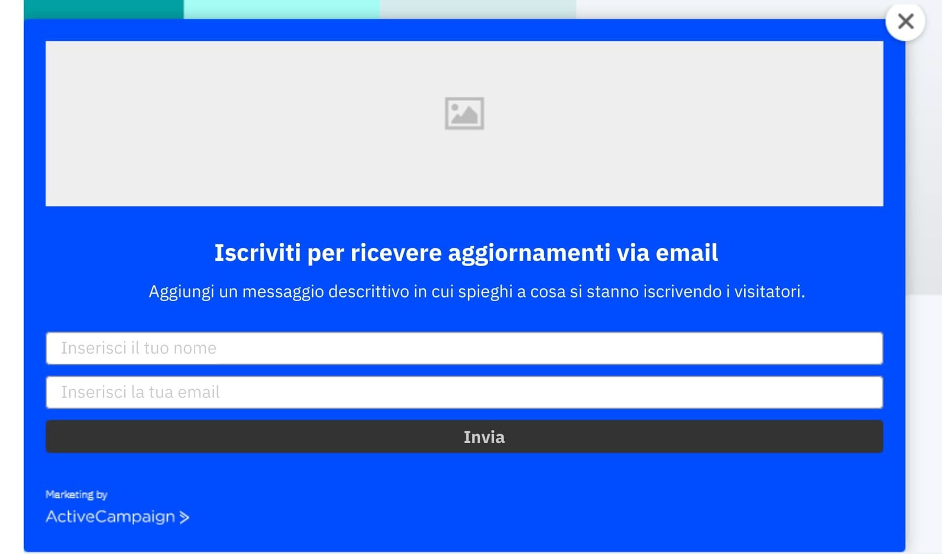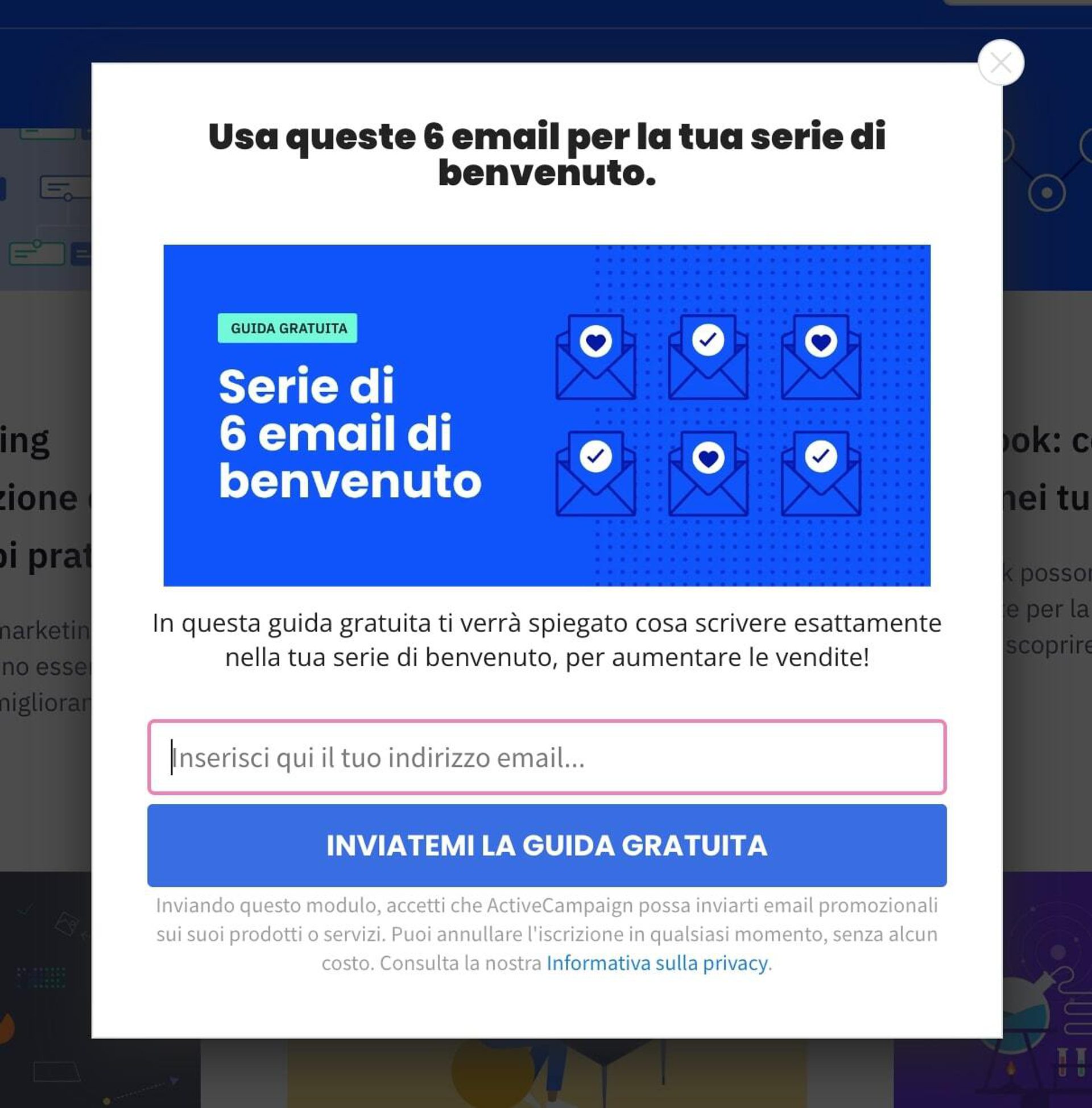 In genere si tratta di un piccolo riquadro che include una call to action, un’immagine o una grafica volte a catturare l’attenzione del visitatore e un modulo di iscrizione.