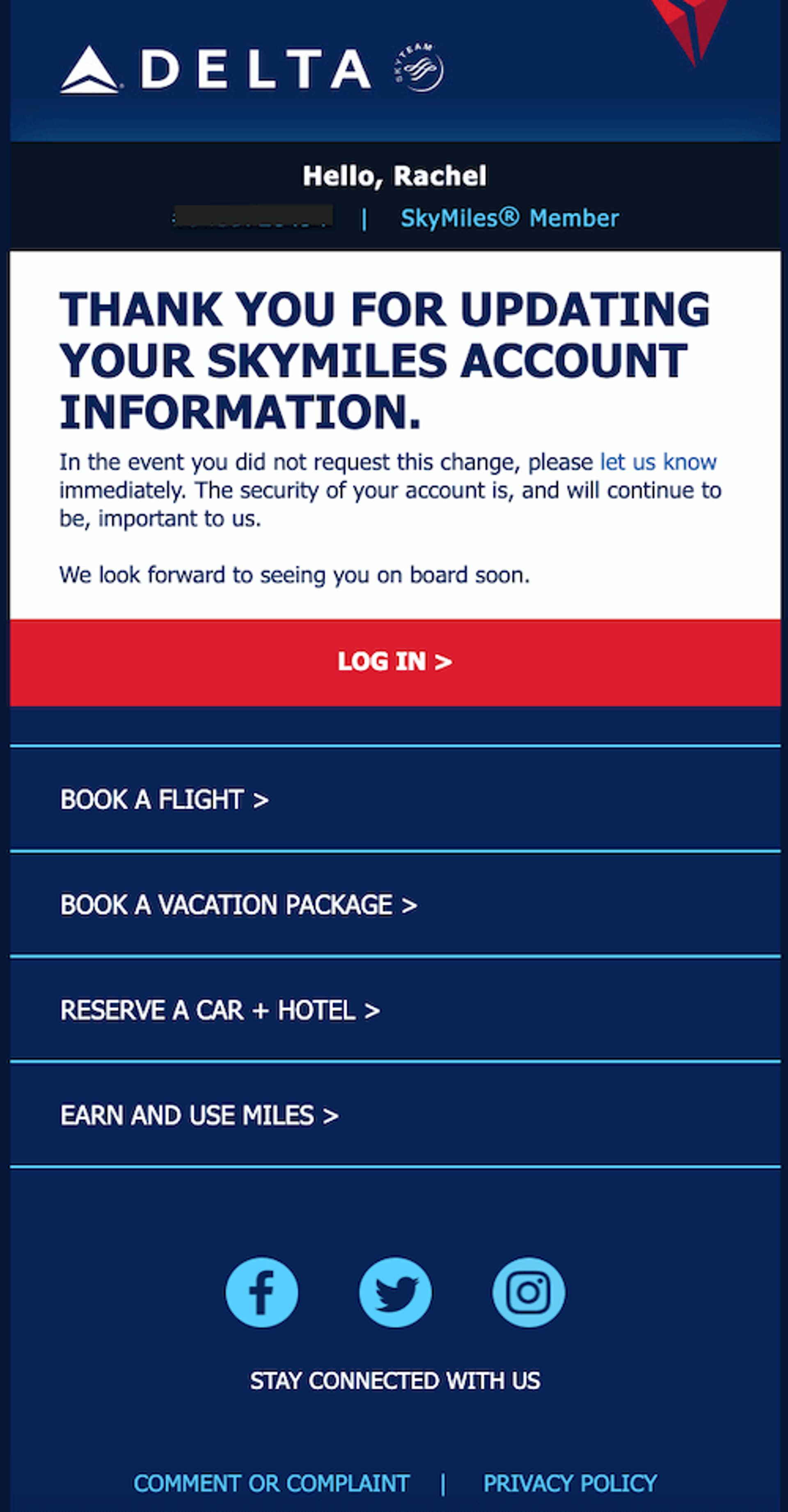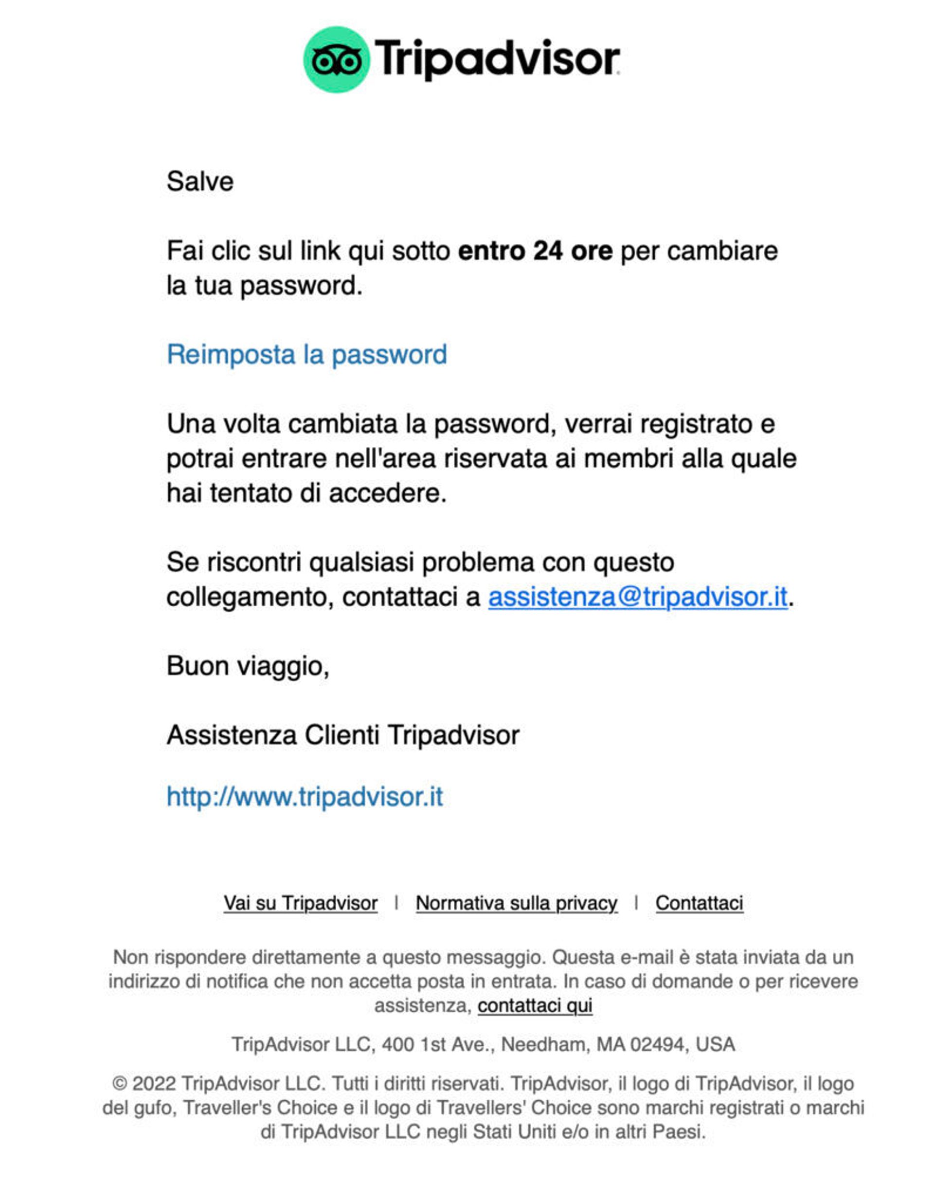 Nel momento in cui si dimentica una password, si può richiedere di impostarne una nuova, e in pochi minuti si riceverà un’email con un link al proprio account di posta elettronica. Cliccando su questo link si accede a una pagina web che dà la possibilità di modificare le proprie credenziali. Infine, si riceve una nuova email transazionale contenente la conferma che il processo è andato a buon fine.
