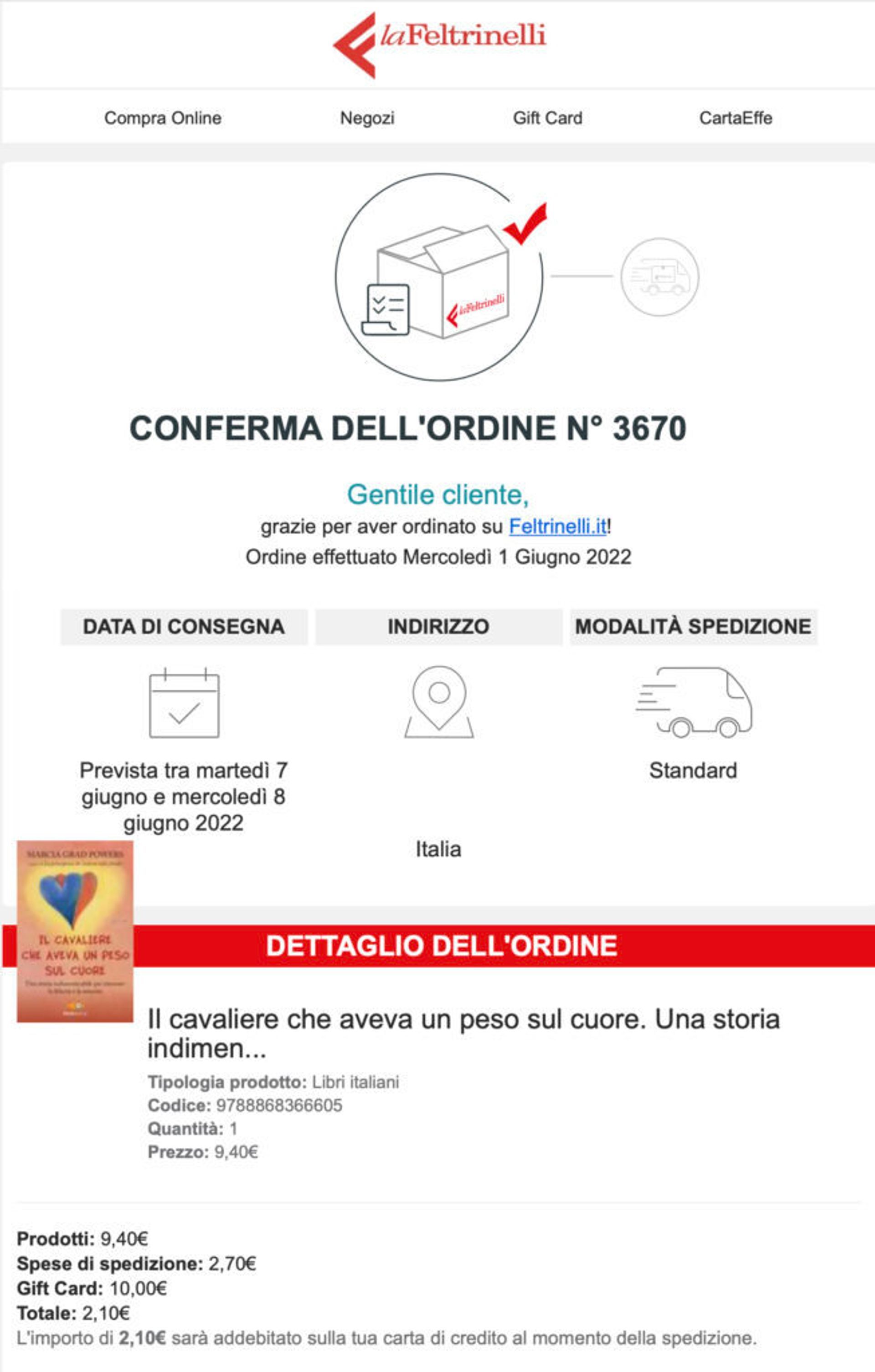 Questa è una delle email attese con maggiore impazienza. Si tratta di un’email transazionale essenziale quando vendi prodotti o servizi online.