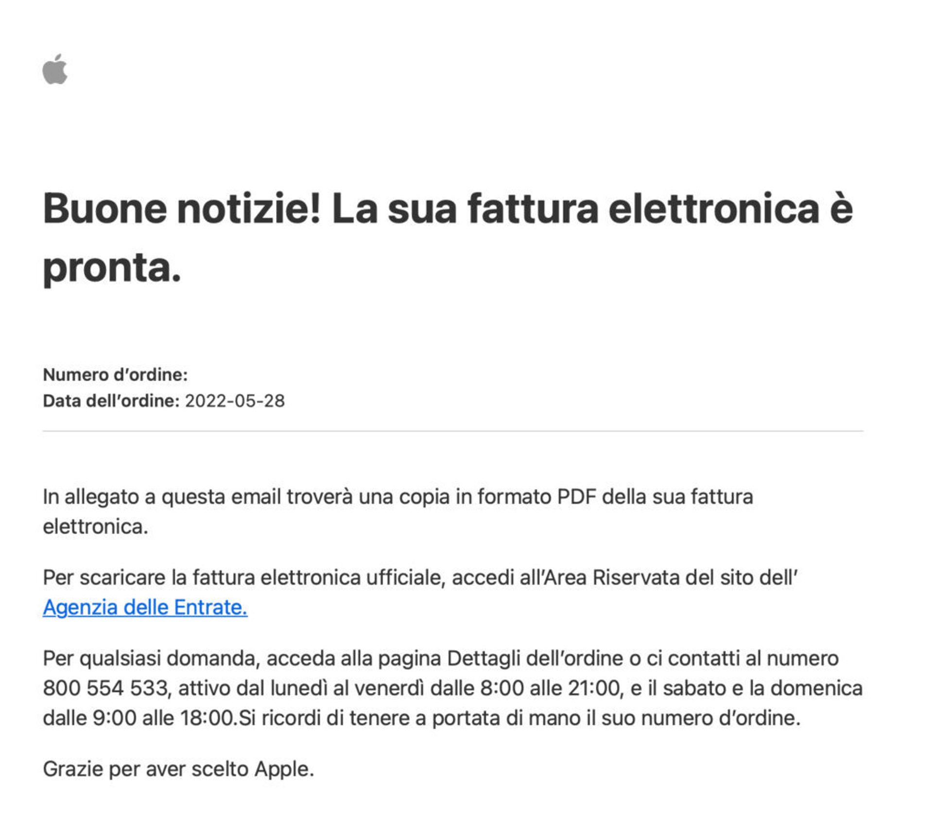 In alcuni casi le fatture o le ricevute sono contenute nelle email di conferma; in altri, invece, si trovano all’interno di email transazionali dedicate.