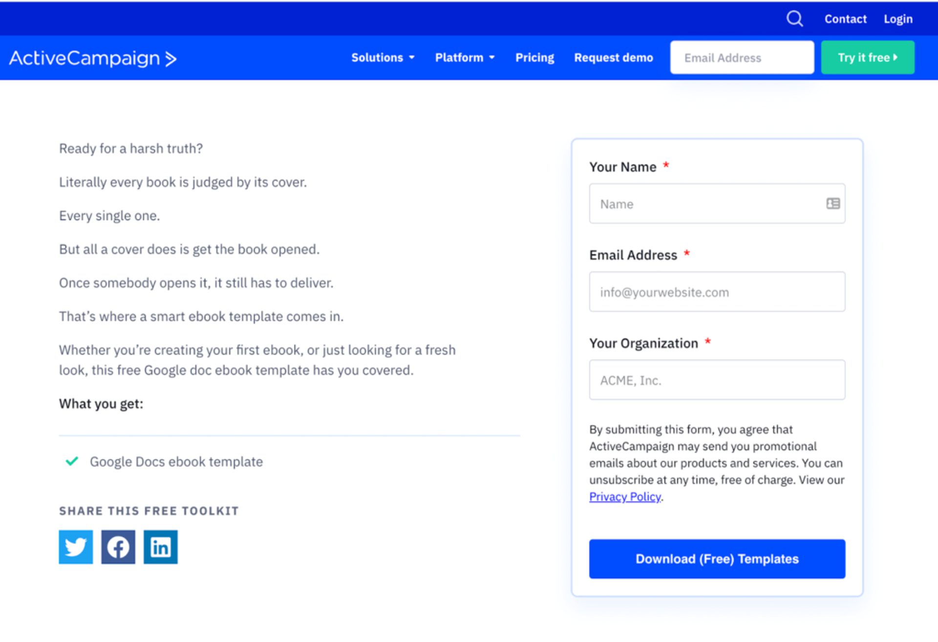 I modelli (come il modello di eBook nell'immagine sopra) sono generalmente un buon esempio, poiché massimizzano il valore di utilità per la persona che consegna i propri dati.