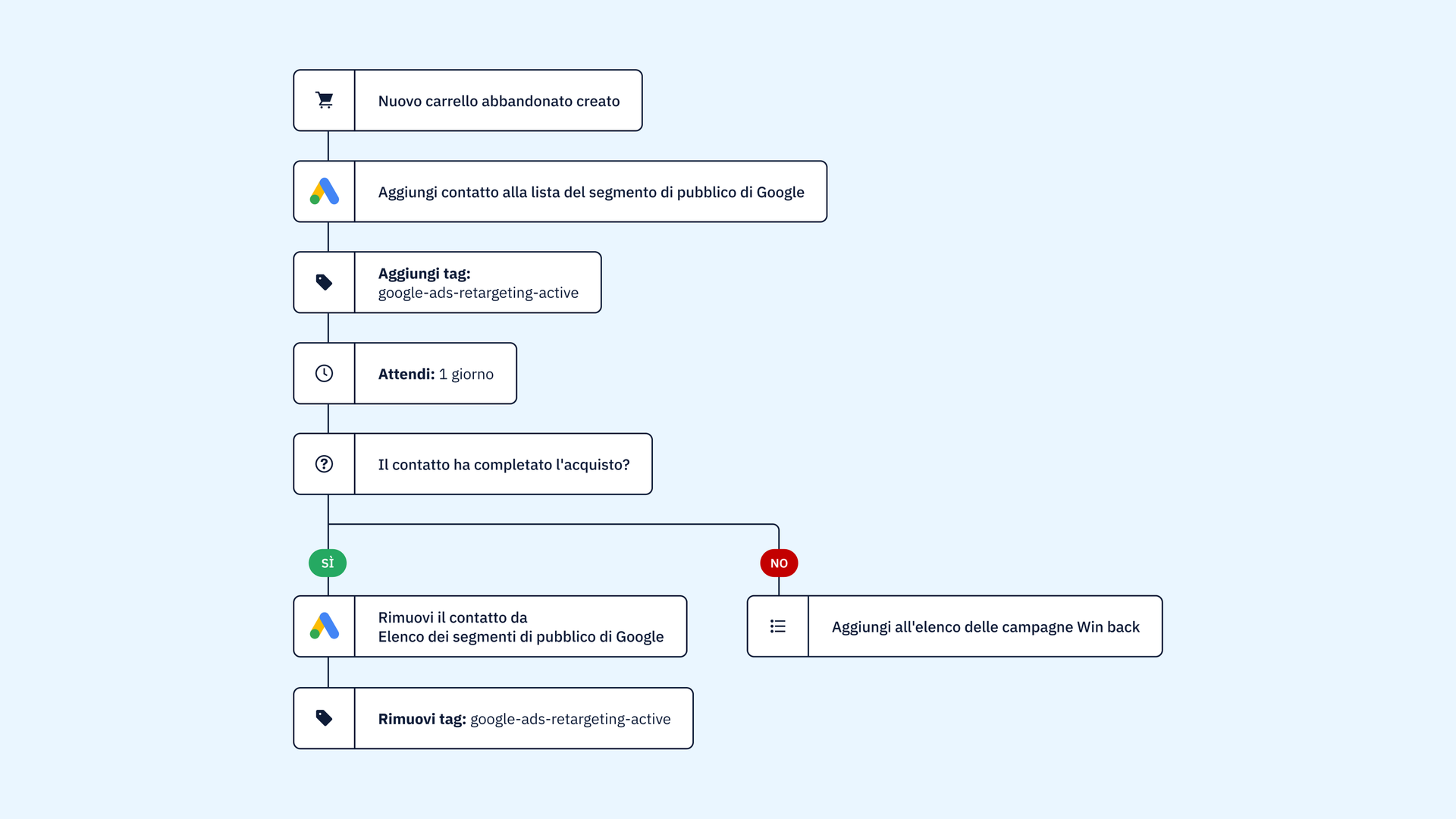 - Riattivazione dei clienti inattivi: Ravviva i rapporti con i clienti che non sono coinvolti di recente e crea campagne di riattivazione tramite Google Ads.