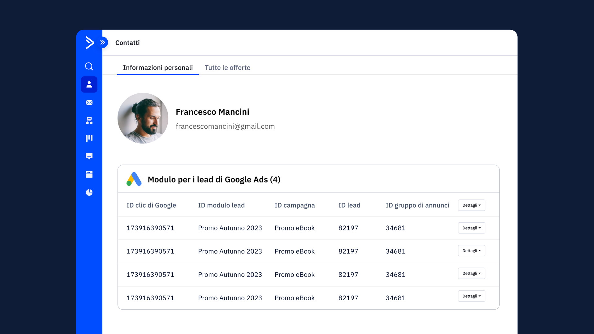 Prendere decisioni basate sui dati: Migliora i tuoi sforzi di marketing e ottieni una visione più completa della tua attività. Sfrutta i lead score e i dati dei prospect per ottimizzare il targeting e le strategie di offerta di Google Ads, assicurando che gli investimenti pubblicitari siano rivolti ai lead con il più alto potenziale di conversione.