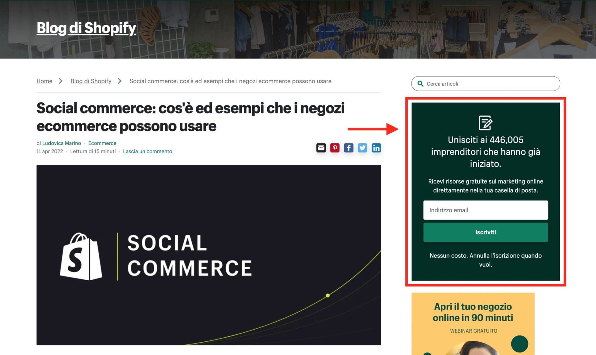 Ciò non vuol dire che i moduli opti-in laterali siano trascurabili. Dobbiamo sempre cercare di soddisfare le aspettative dei clienti, e se i visitatori si aspettano di trovare i moduli di opt-in email nelle barre laterali… è (anche) lì che dovremo aggiungerli.