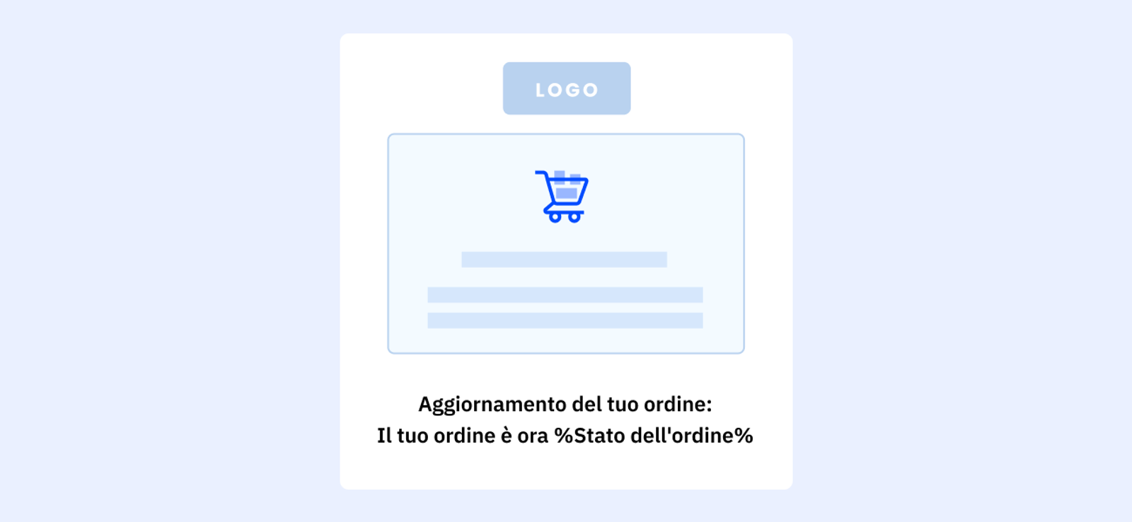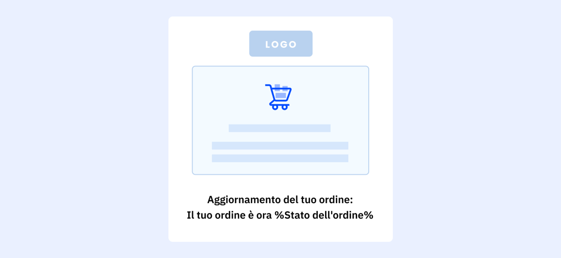 - Stato dell'ordine: Invia un follow-up tempestivo ai tuoi clienti quando il loro stato dell'ordine cambia. Con le nostre potenti funzionalità di marketing automation, puoi automatizzare questo processo in modo rapido e semplice. Questo approccio proattivo assicura che i tuoi clienti rimangano informati, favorisce il coinvolgimento per rafforzare le relazioni e apre la strada a clienti fedeli e abituali.