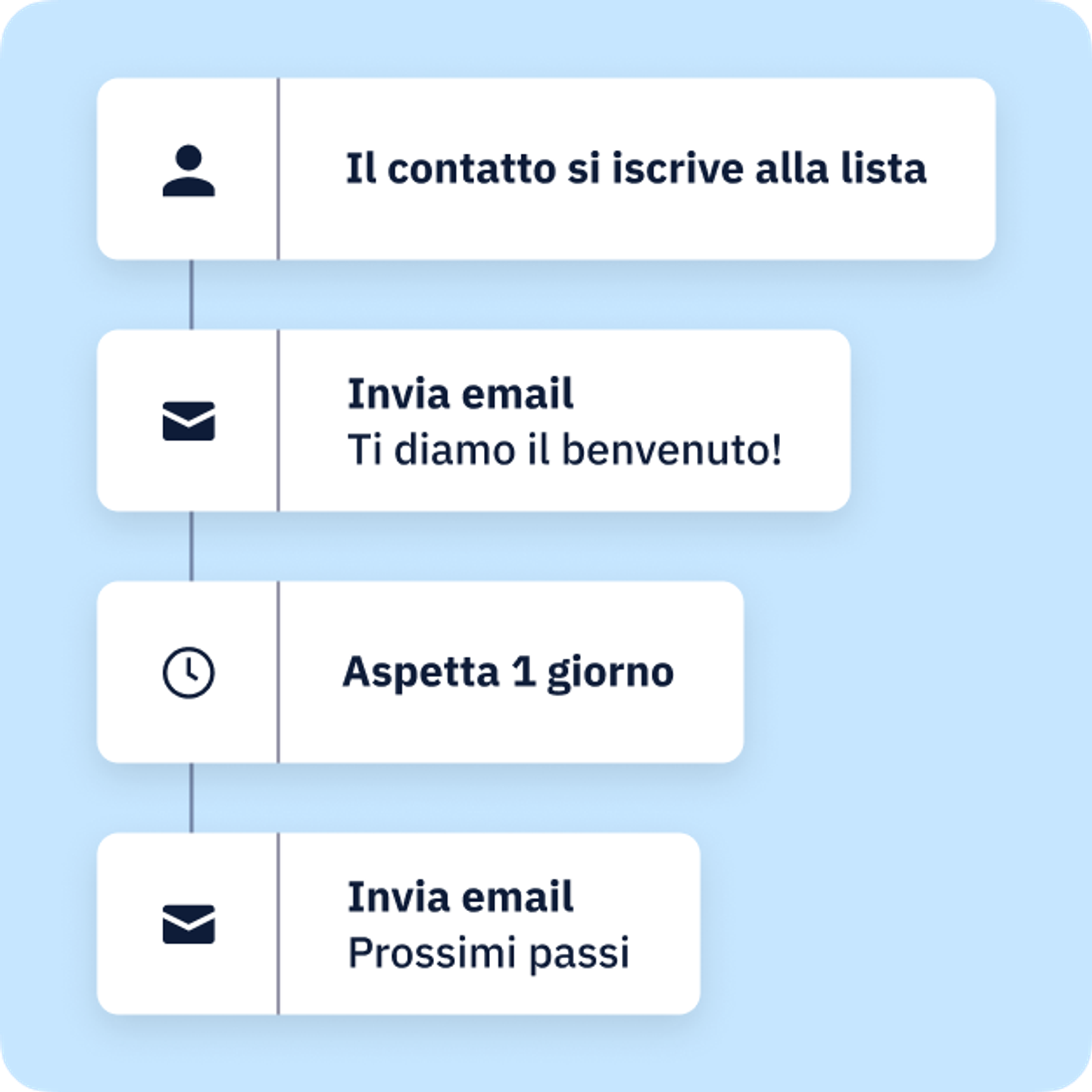 Che tu sia alle prime armi con l'email marketing o che tu stia passando da un'altra piattaforma, risparmia tempo e denaro con il nostro potente flusso di lavoro incentrato sull'automazione.